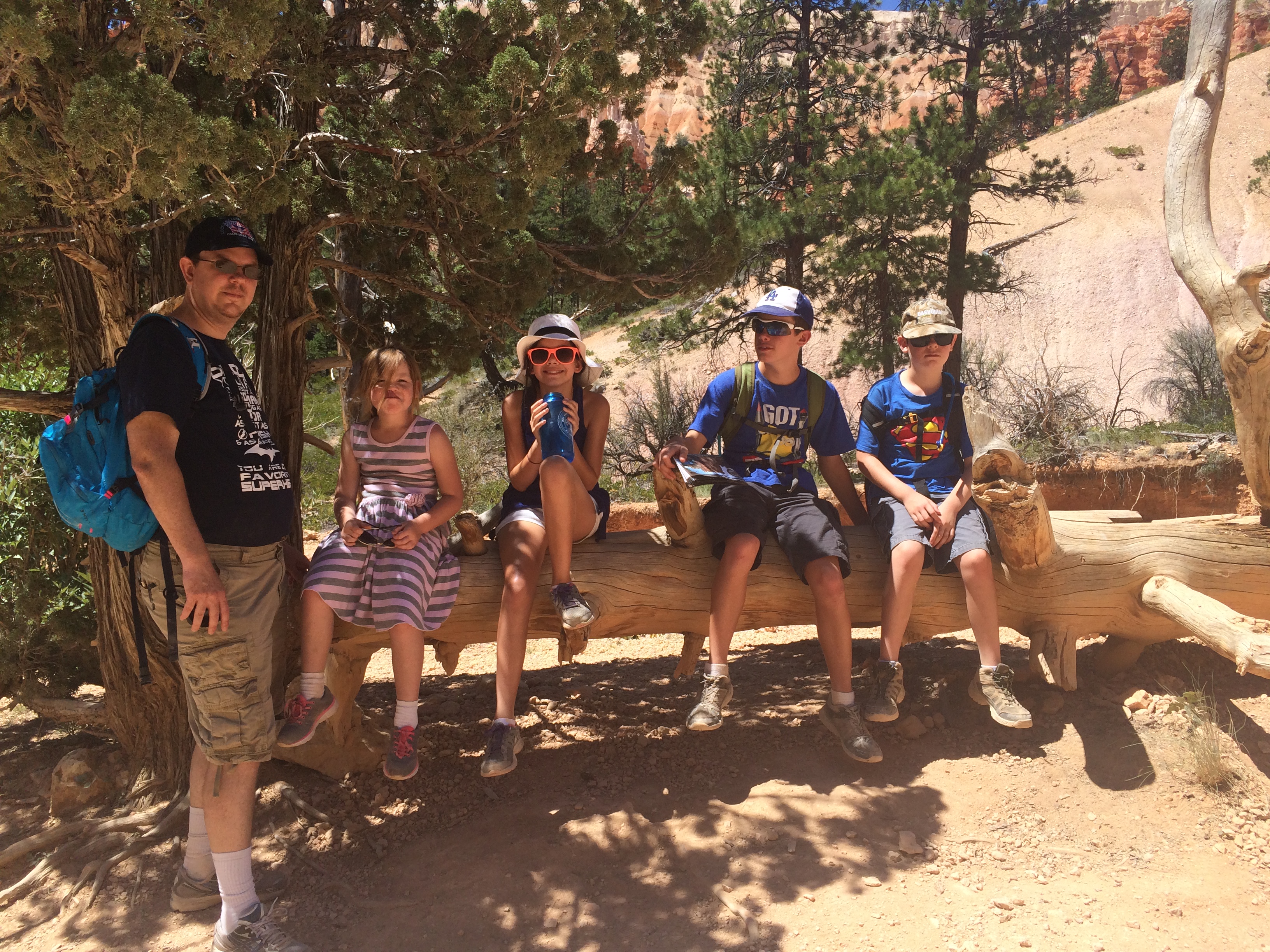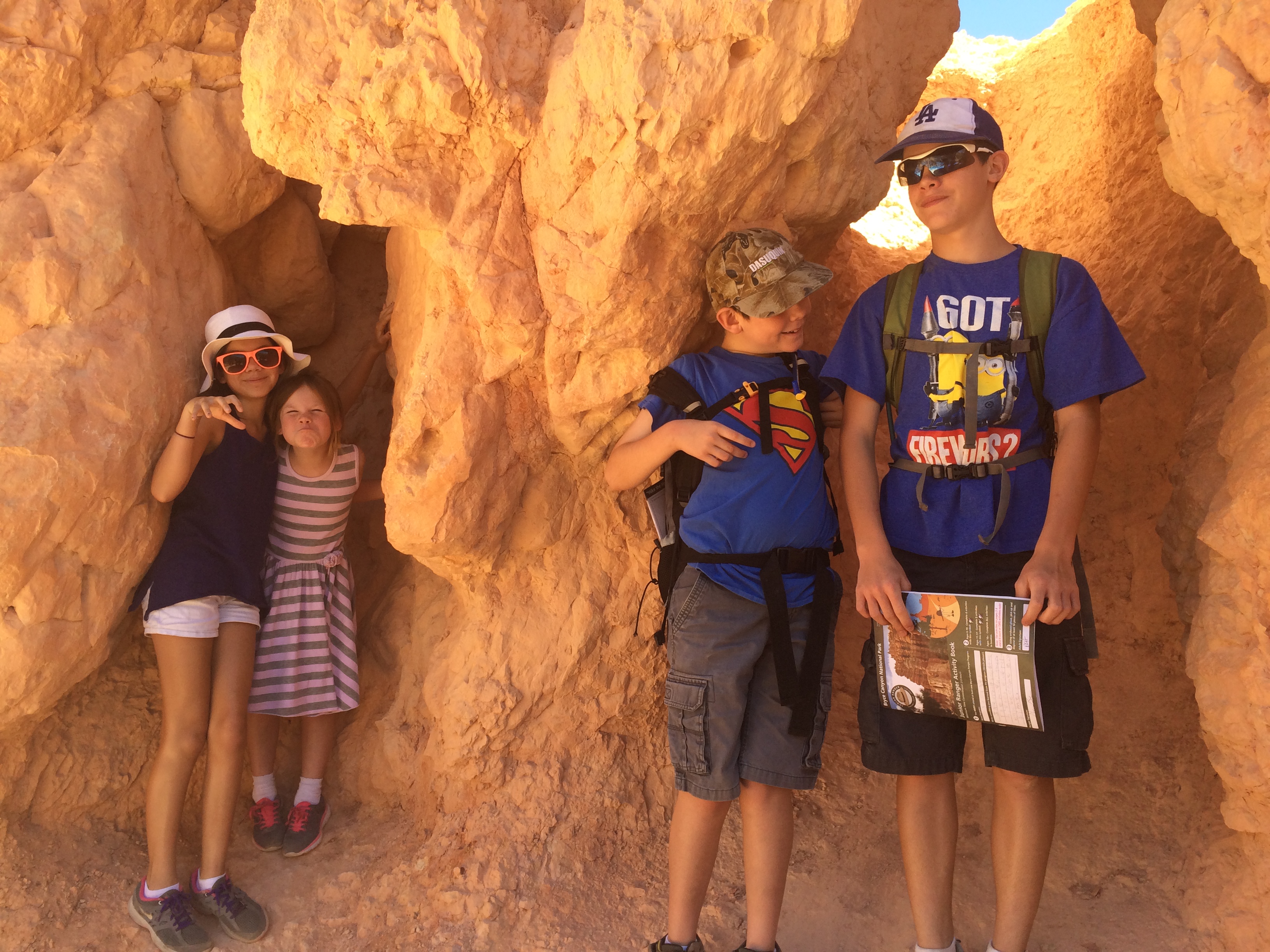 Bryce Canyon has a junior ranger program. Just stop by the visitor center for your booklet. We had a great time participating in the junior ranger program. In addition to earning their junior ranger badges, the kids received a really cool “I hiked the Hoodoos” pin for hiking down in the canyon and completing the Queens Garden and Navajo Trails. The husband and I, who also hiked the hoodoos, were disappointed to get only a postcard. To be fair, it was a pretty nice postcard; and that’s not why we completed our hikes anyway.