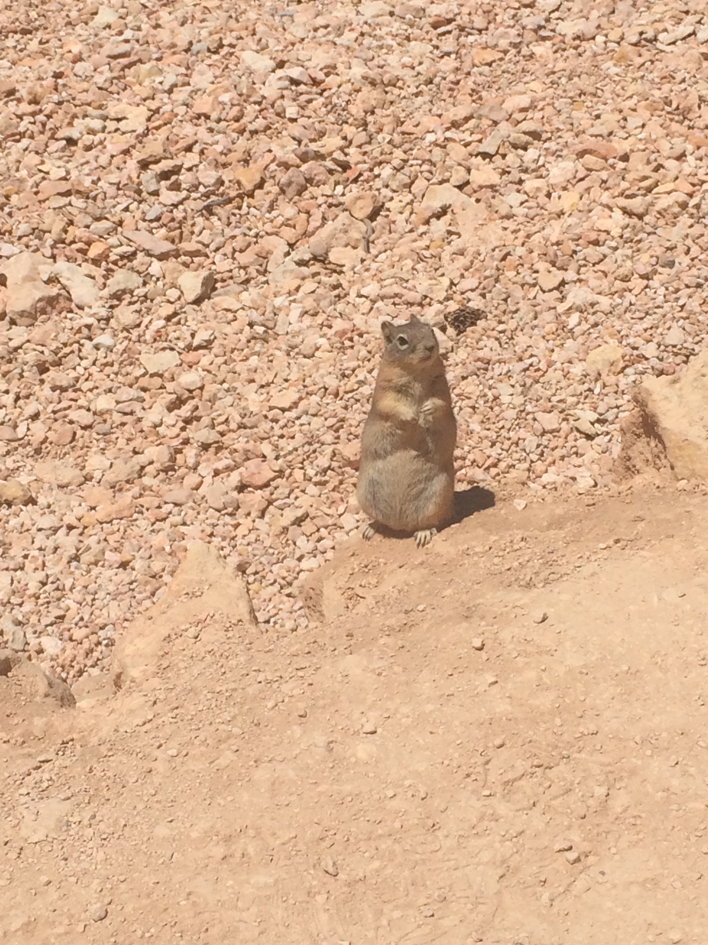 As Bryce Canyon spans over 2000 feet in elevation, there are different ecosystems within the park, characterized by different types of vegetation. The three climate zones are spruce forest in the higher altitudes, Ponderosa pine forest in the middle zones, and pinyon pine forest at the lower elevations. The kids were charmed by the variety of wildlife we saw in the park while hiking the hoodoos. The girls loved watching the prairie dogs playing in the canyon, and the boys were excited to find a young rattlesnake on the side of the Queen’s Garden Trail. I was a little annoyed to watch folks get within striking distance of the snake to take photos, but that is a risk they take. Along with the Utah prairie dog, other mammals that reside within the national park include the golden-mantled ground squirrel, Uintah chipmunk, cougar, coyote, pronghorn antelope, and ringtail. In addition to the Great Basin rattlesnake, there are ten species of reptiles, and four species of amphibian that call Bryce Canyon home.