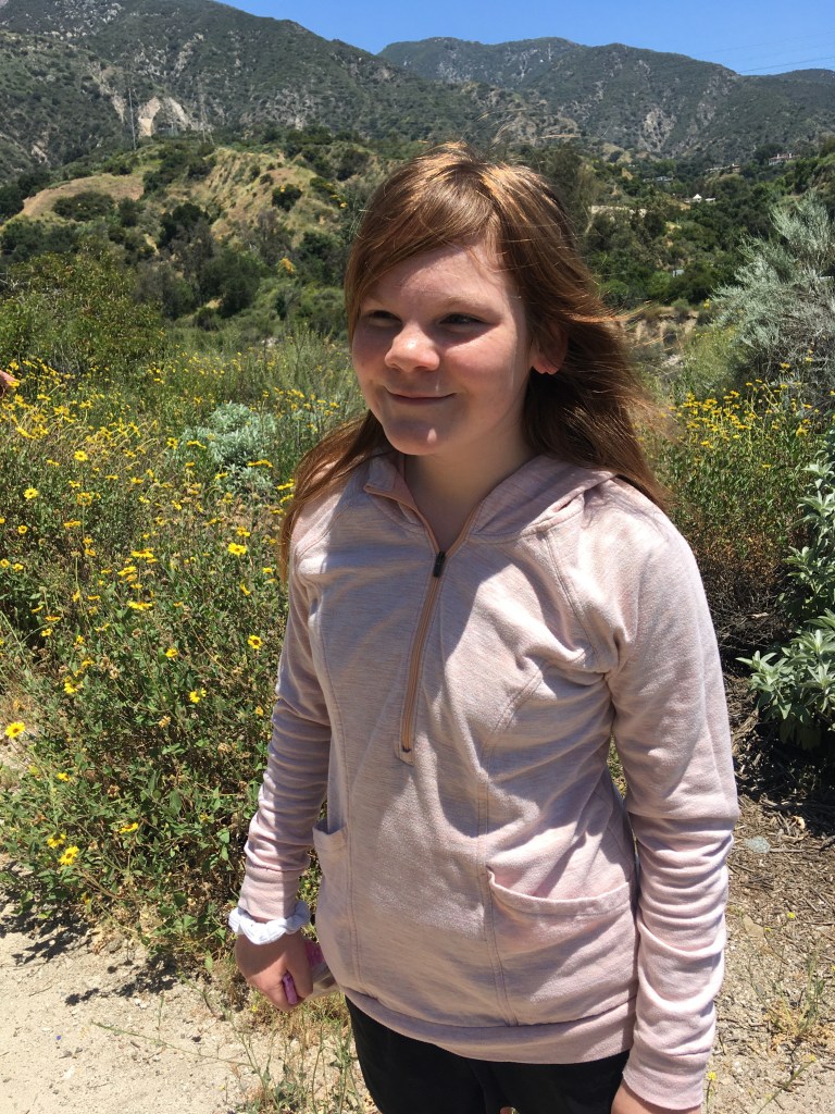 The day, while warm and very sunny, was pleasant. It felt good to be outside and back in nature, even if it was in the frontest of the frontcountry. Though we didn’t make it to Henninger Flats on this trek, which had been our original plan. The boys found a magazine that they correctly identified as being from a law enforcement weapon on the Eaton Canyon trail close to its junction with the Mt. Wilson Toll Road. Jacob stopped to call the sheriff’s office to have someone check on it, so he and Nate waited for a response. Sami was clamoring to head to the waterfall, rather than up the mountain to the campground. So we waited, and sure enough, the mounted sheriffs came to retrieve the magazine, much to our relief and to the excitement of my equestrienne who hadn’t been to horseback lessons for a while thanks to the Covid. With that delay, I conceded that the waterfall would probably be a better option, with the stipulation that if it got too crowded, we’d have to turn around.