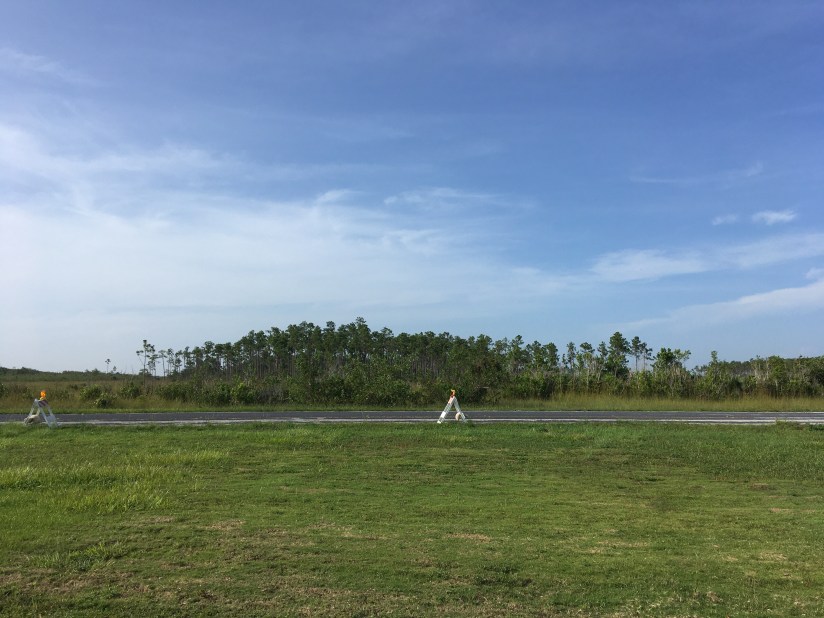 After exploring around the Anhinga Trail a bit longer, we hopped back into the car and followed the main road south to Flamingo. It was about 38 miles, and took us about 45 minutes to get down there. There are a number of signs, trailheads and picnic areas on the way to Flamingo. We didn’t make any side trips on this visit, but for someone who has more time, I’d absolutely recommend pulling off to view the Pinelands or Mahogany Hammock trails. The Pinelands especially are so different from the wetlands. Just three feet in elevation makes a world of difference to the biodiversity of the area. Here slash pines rise above the forest floor, which is dominated by saw palmetto and sabal palm trees, which are Florida’s state tree. We made a couple stops to peek and read signage, but otherwise drove onto Flamingo.
