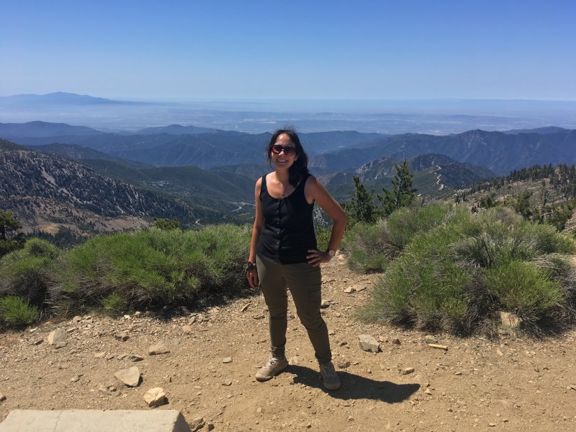 We reached the summit after about three hours of hiking, including breaks. There we came across the ruins of an old fire lookout, which turned out to be a PokeStop in the Pokemon GO game. The view from the summit was beautiful. There was too much haze this past Saturday, but on a clearer day, you can actually see out to Catalina Island. Still we enjoyed the time soaking in the view at the top and having lunch at the summit.