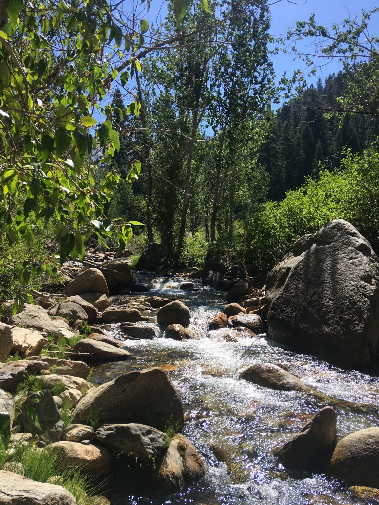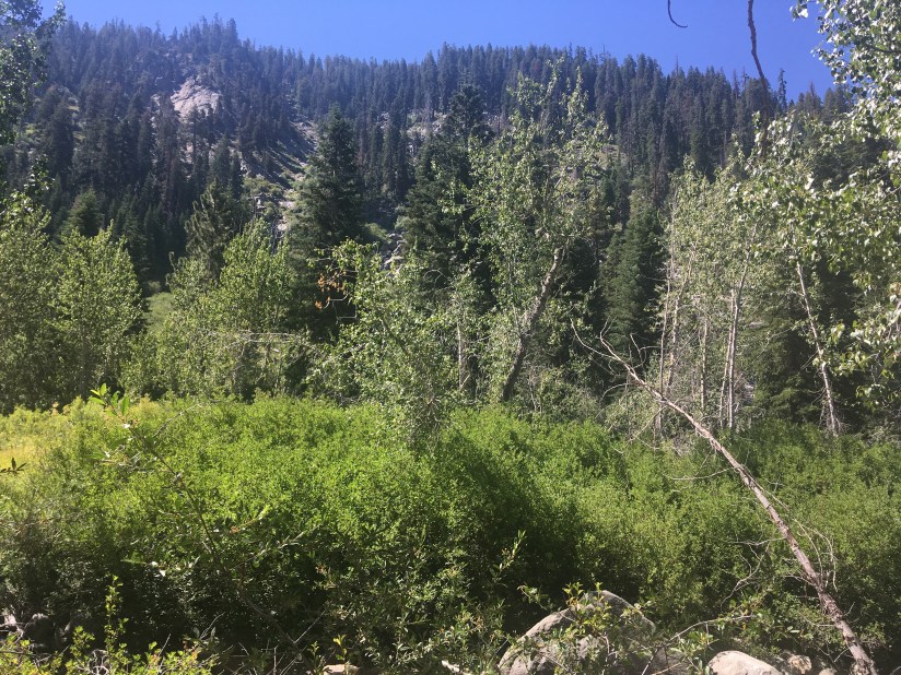 We began the trip at Mineral King, a subalpine valley east of the main entrance to the national park. The drive up to the Cold Springs Campground by the Mineral King Ranger Station was a winding 23 miles from the California 198. The road wasn’t too hard to navigate and was for the most part decently maintained, but it did require some concentrated driving as it was about a lane-and-a-half wide, going down to one narrow lane between sequoias at parts. It took a solid hour to go those 23 miles, and it was totally worth it. The views from the road were stunning, and the scenery surrounding the campgrounds peaceful, with the east fork of the Kaweah River flowing through it.