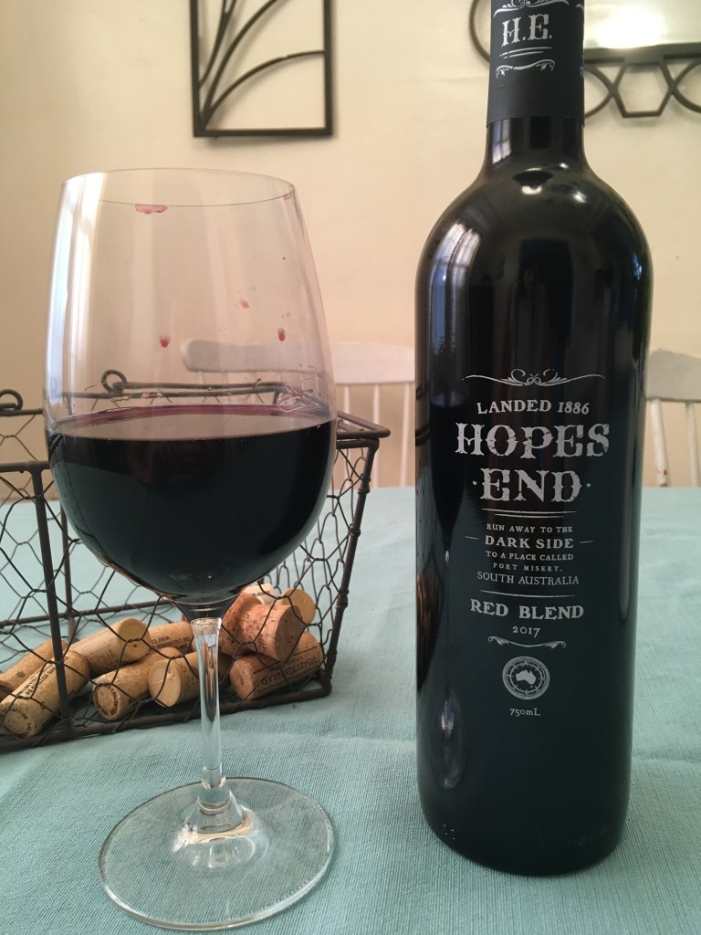 The winner of my Friday Fun Wine List: 2020 Edition based on name alone, is the appropriately named “Hope’s End.” The story behind the name is actually an interesting one. Folks who traveled to Australia in the late 1800s in search of a better future, instead ended up at the depressing and lawless Port Misery in South Australia. It is said that they figured that this was ‘Hope’s End.’ In that moment, they decided to stop hoping for a better tomorrow, and began living for the day. Ironically, that carpe diem new perspective seems pretty hopeful. And so is this red blend with flavors of soft boysenberry marmalade and cherry jam, with subtle new oak and a velvet smoothness and hints of chocolate and vanilla. As I enjoy a glass of this nice red, I am reminded that there are always small joys that can be found in our present circumstances, even though we’ve sailed into Port Misery in a place called Hope’s End that is the year 2020.