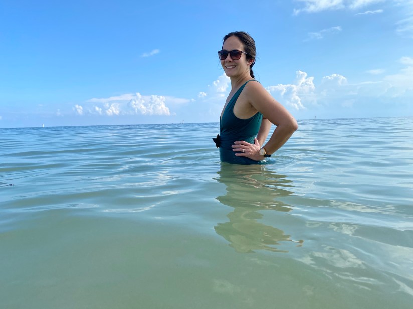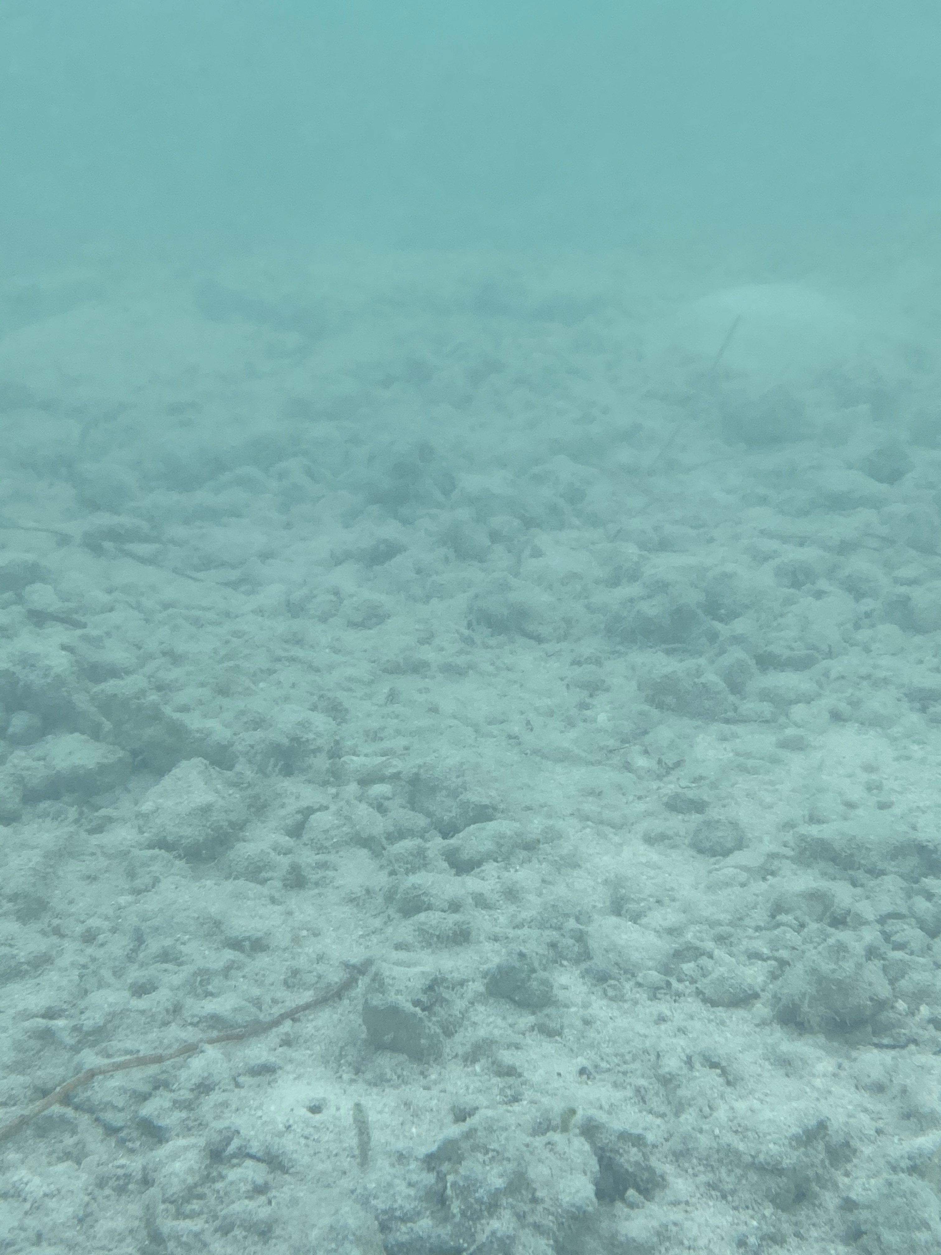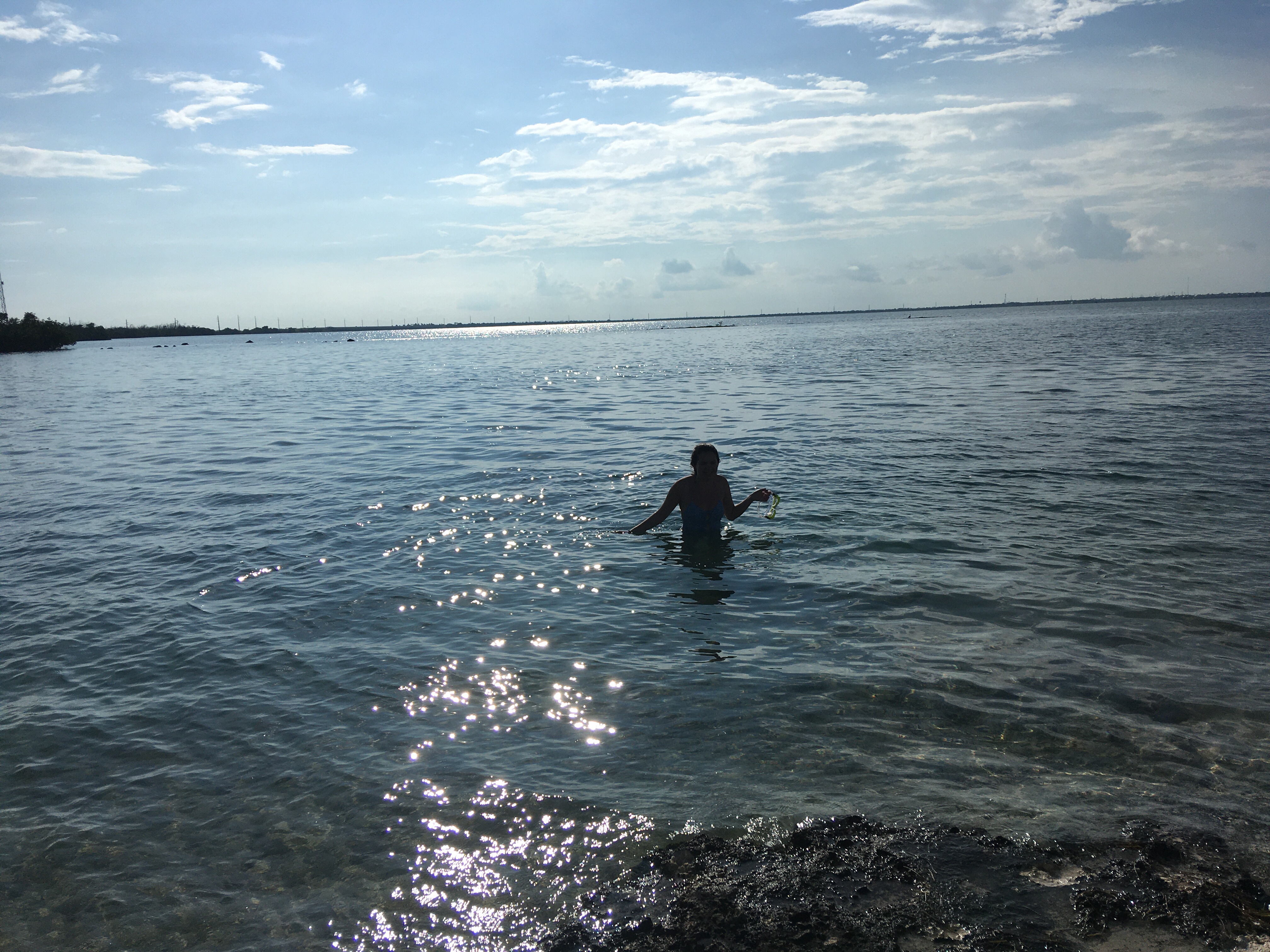 Our pursuit however was to go swimming and maybe do a little snorkeling, as the coast off Florida is home to the third largest barrier reef in the world. After a quick stop to grab more water and a few snacks, we headed south of Islamorada to Sombrero Beach on Marathon Key. This family-friendly beach park features a playground and picnic pavilions with grills for fun beachside barbecues. However the best part of Sombrero is the beach itself. The sand is soft and clean, and the Atlantic waters are warm and calm, very different from the cold Pacific waves that crash along the coast of California. It was so easy to get into full vacation mode while relaxing in the gentle blue-green waves. To add a bit of excitement, we saw a school of silvery fish jumping across the water. After a pleasant swim, we headed out and continued south toward Horseshoe Beach, a spot that according to Google is good for swimming and snorkeling.