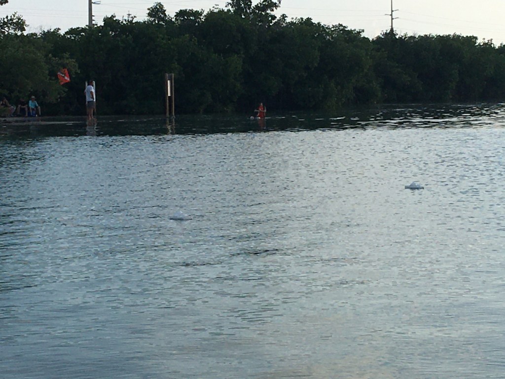 After crossing that one off my bucket list, we arrived at Horseshoe Beach. This beach, if one can really call it that, was formerly a coral quarry whose materials were used for the building of the Overseas Highway. Today, the horseshoe shaped reef is an easily spot for fishing, snorkeling, or swimming. The center is said to be 30 feet deep, so supervision is a must. After setting our stuff down on the dry surface, we got on our inexpensive drugstore goggles and headed into the water. The snorkeling wasn’t exactly as colorful as Hawaii, but we were able to see a lot of fish, as well as a sting ray. Unfortunately after about 40 minutes, we also found some jellyfish, and while they looked really cool, that spooked us enough to get out of the water. And good thing too. As we were swimming back, I looked up and saw Emily’s sandals floating away and realized that the tide had risen and was coming up to our belongings. I moved our things and she swam after her sandals. Fortunately we didn’t lose or damage anything, but we did get some funny photos of the plastic Birks floating on the water, and we learned a valuable lesson about thinking ahead.