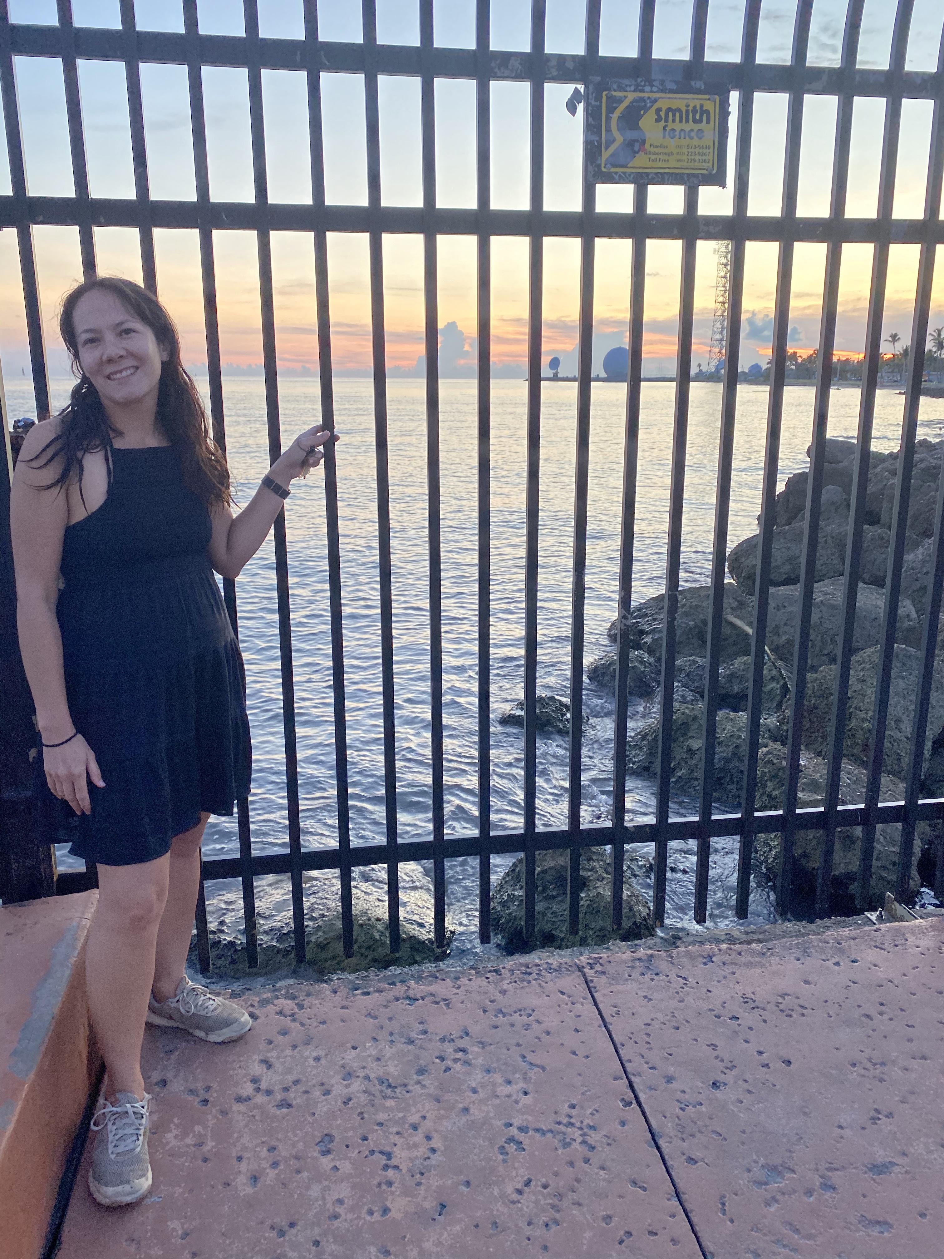 After chasing Emily’s sandals and getting changed at the car, we checked Google maps and found that we were only about 30 miles away from Key West. We decided since we already came that far we would continue southwest and hit the southernmost point in the United States at sunset. The drive down went smoothly as the sun began to set. By the time we crossed the causeway onto Key West, the sky was turning gold, with brilliant clouds in an orange sky. We followed Google Maps through the cute neighborhoods reminiscent of bygone Americana to the Southernmost Point.