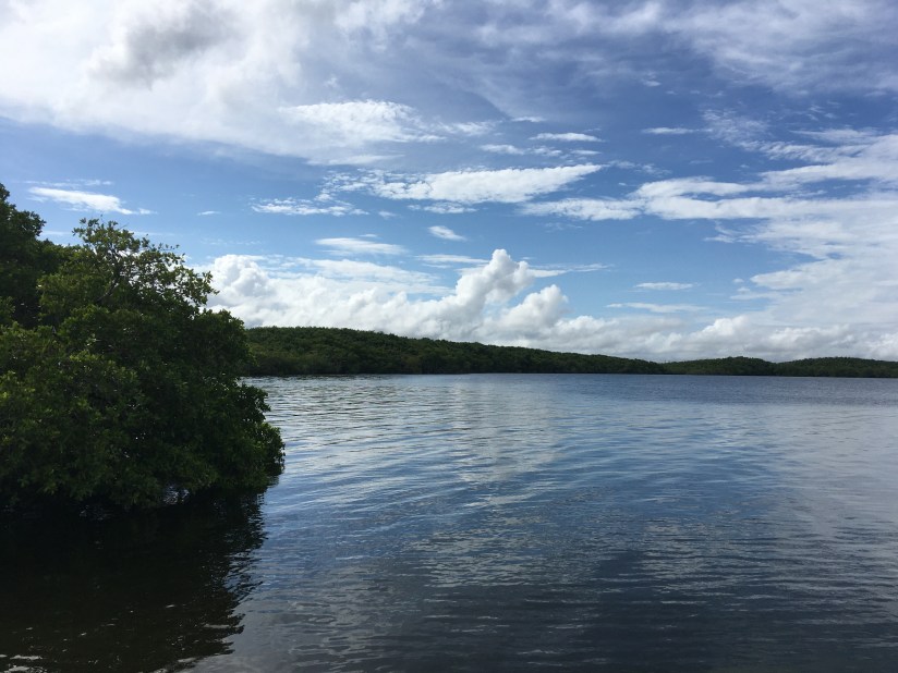 I walked the boardwalk, taking in the view of the bay, enjoying the quiet. A single dolphin swam by, and that was probably the most exciting thing I saw that day. Manatee sightings are said to be fairly common, and as the area is a manatee sanctuary, this makes sense. They just seem to elude me, just as they hid on our kayaking trip in the Everglades. I wasn’t prepared for any sort of watersport, and some type of watercraft is required to explore most of the park. There is only one mile of paved roadway, and a parking lot. I stayed along the Biscayne Bay/Convoy Point shoreline. In addition to the dolphin and bright green minnows, I saw a variety of birds and two green anoles, a type of lizard native to the park. Unfortunately I got more photos of the green iguanas that are invading Biscayne. Nevertheless, it was a beautiful afternoon well-spent.