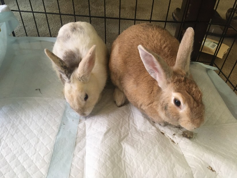 They were not wrong. After a successful phone interview, we picked up our new bunny on Wednesday, May 26. He was smaller in person than he looked on the website, but he was hopping around the adoption area and seemed a curious little rabbit. He looked especially cute standing on his hind legs as he sniffed around. While a bit skittish, as would be expected after being in several different places in a short time span, he did strike us as very sweet. We brought him home, and began the process of introducing Henry James to the family. So in just over a year, we went from no rabbits to two rabbits in our 930 square foot home.