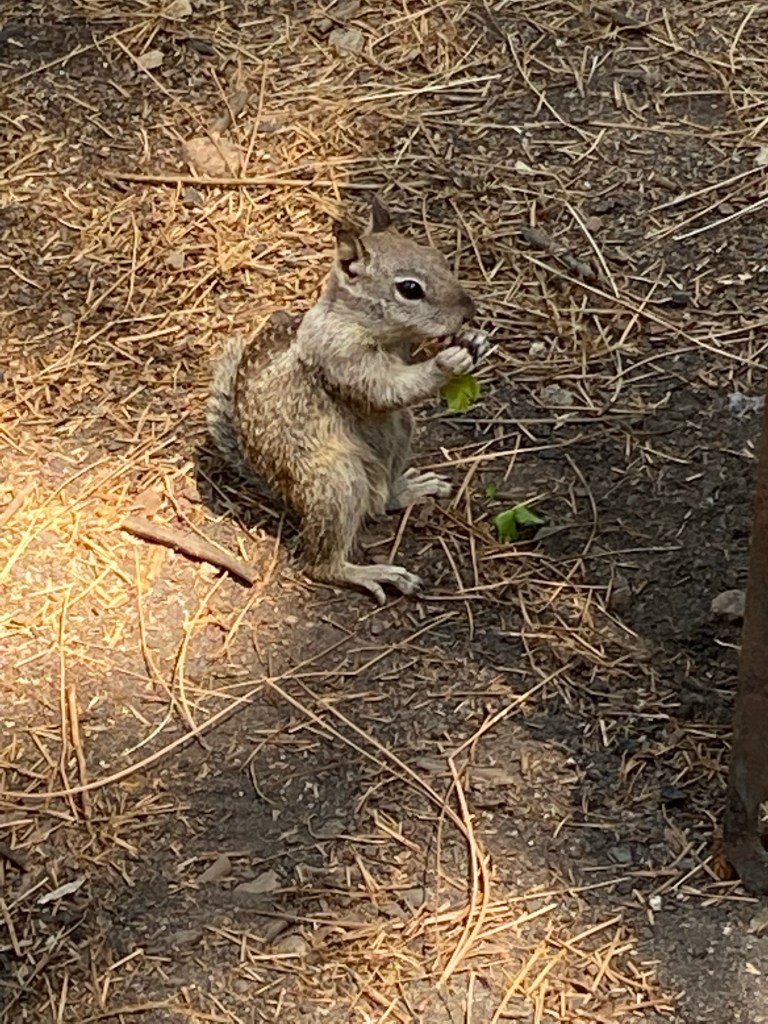 In addition to many birds, there were many California squirrels that took the opportunity to grab any crumb of people food. One squirrel was so bold as to take a cookie from the top of our bear locker when our backs were turned for literally seconds.