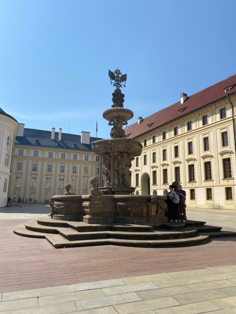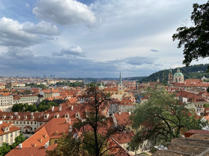We headed up to Prague Castle after touring Emily’s school. The steps up to the castle were within easy walking distance from the doors of her university. Needless to say, she has a fantastic view of the complex from where she will study, and will likely have ample opportunities to explore as she continues her time in Prague. We headed up the stairs and as the day was gorgeous and a little on the warm side, it actually took quite a bit of effort from up to make it up to the top. At least there were some beautiful views of the city below even on the climb.