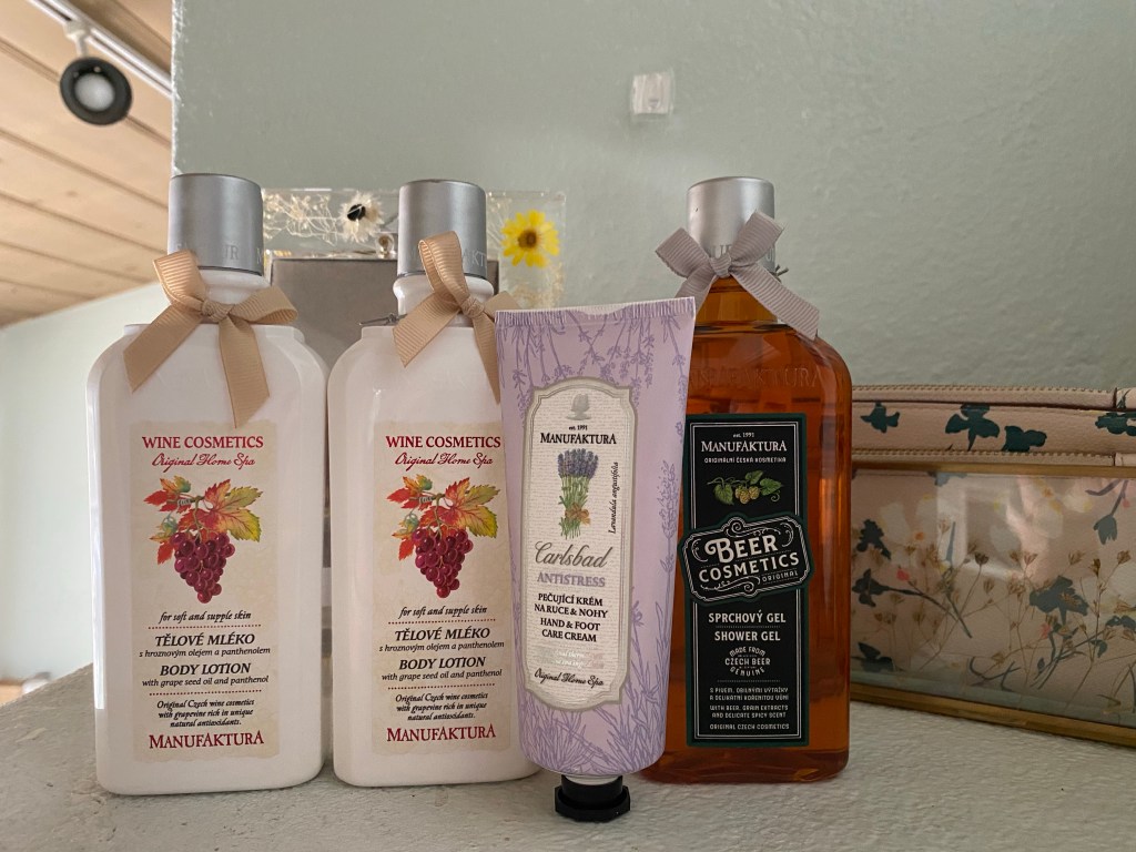 While on my walk around Prague 1, I passed by Manufaktura, a specialty bath and body shop close to Old Town Square. I had read about their unique beer soaps online prior to my trip, so I decided to head in. There I found a lovely selection of beer and red wine body washes and lotions, along with pretty selections derived from ingredients such as lavender, rose hips, and wildflowers that are local to the Czech Republic. Even better, because they were celebrating their 30th anniversary, their most popular items were 30% off.