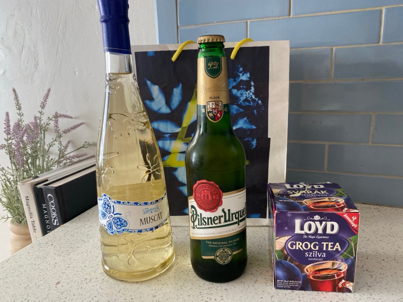 It is said that ‘beer is cheaper than water’ in Prague. I found that to be absolutely true on this trip, and kicked myself after one meal when I spent about 30 koruna more for a bottle of water than I would have for a half-liter of pilsner. For friends and family who appreciate their adult beverages, a sample of the local brews makes a great gift, in your checked bag of course. While grocery shopping, I picked up a bottle of the original pilsner, and Czech Republic favorite, Pilsner Urquell. I tried a half-liter at dinner one evening, and it was pretty good. I figured is was something the guys would appreciate. While in the drink area, I found the prettiest bottle of muscat, with a pretty butterfly design right in the glass. It will be a cute vase or water carafe long after the wine is consumed. At about 1.50 for the beer and 5 USD for the wine after conversion, these were also pretty economical gift ideas.