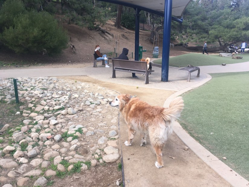 The Eagle Rock Dog Park is one of the few that we have been to that does not have separate areas for large and small dogs. This was not a problem for Owen as he is generally well-behaved around all dogs off-leash. When on leash, he can get a bit anxious around smaller dogs, especially those that are barkers, but like many dogs, he tends to chill out a bit when off duty, so to speak.