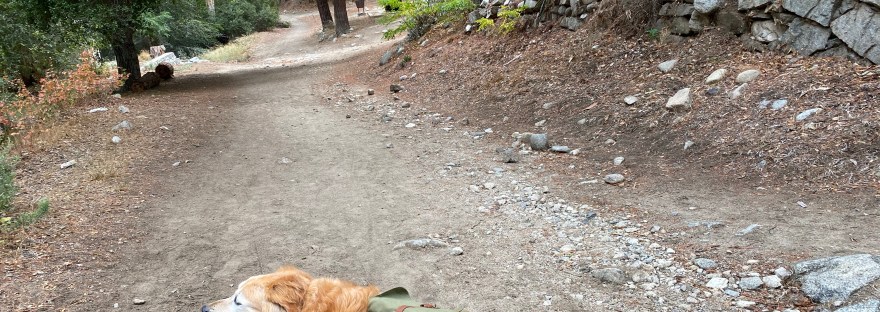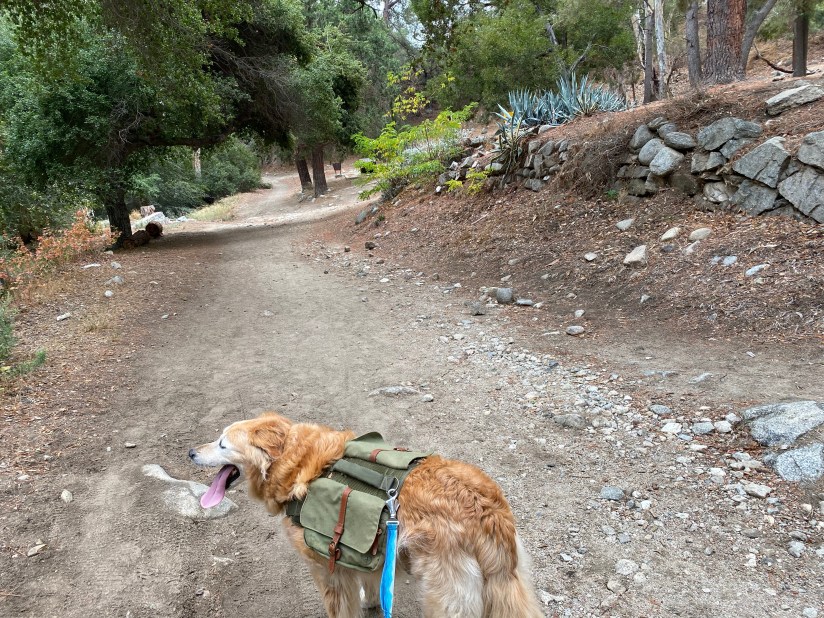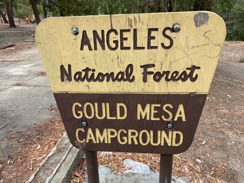 I decided to take Sami and Owen on a hike to Gould Mesa. But as we were short on time and Samantha is in a ‘no hiking except when we’re at a national park with big trees to yell at’ phase, I decided instead of starting the Gabrielino Trail at JPL and hiking the 2.5 miles to the Gould Mesa Campground as I have many times with Cub Scouts, Boy Scouts, as well as solo with the pupper, we started from Angeles Crest Highway and headed down the hill into the camp. Going this route was only about 1.1 miles to the camp, and the downhill was more palatable to Sami who actually enjoyed Owen’s antics and the cooler weather.