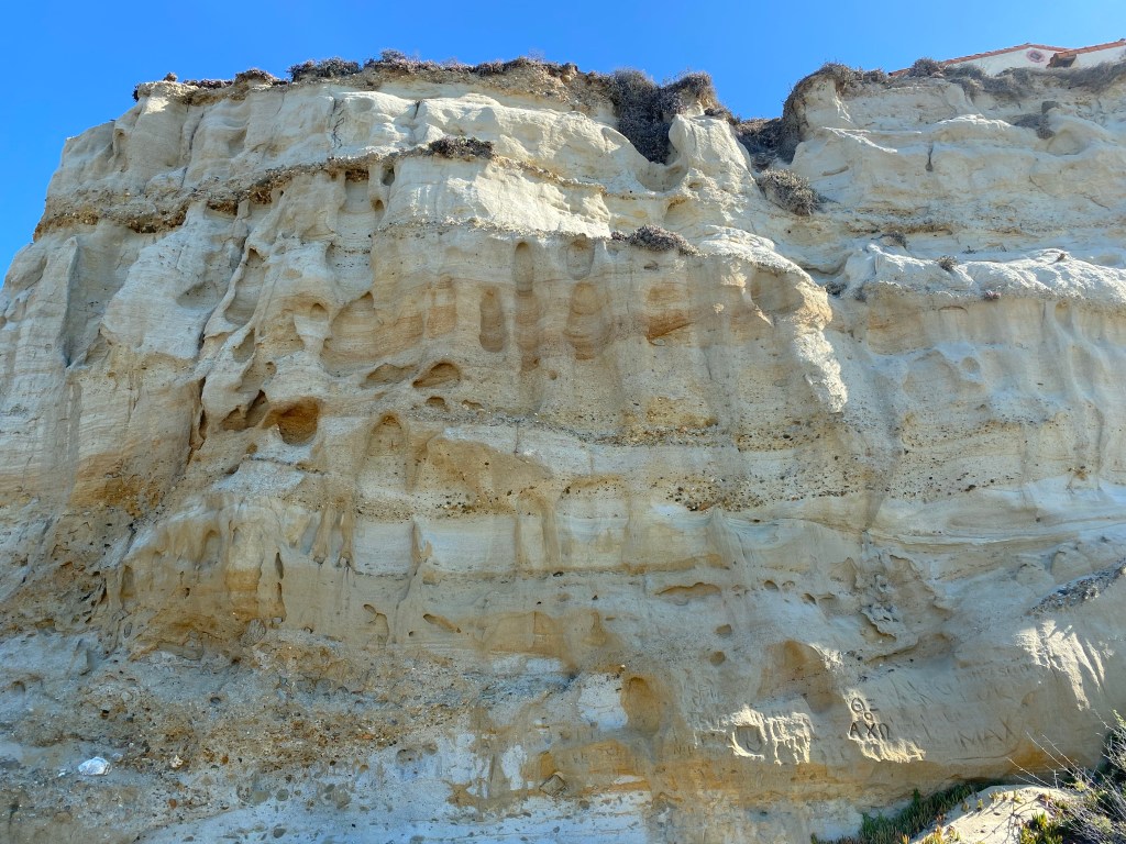 The cliffs overlooking the beach are shale and other sedimentary components that are easily eroded. Indeed, homeowners who live on or near the bluffs have the worry of cliff erosion, and this is in addition to the erosive forces that impact the beaches below. For this cranky camper, however, being able to run the trail and see some of this up close provided an opportunity to do some lesson planning for my sixth grade earth science class with original photos, all while getting some much-needed exercise.
