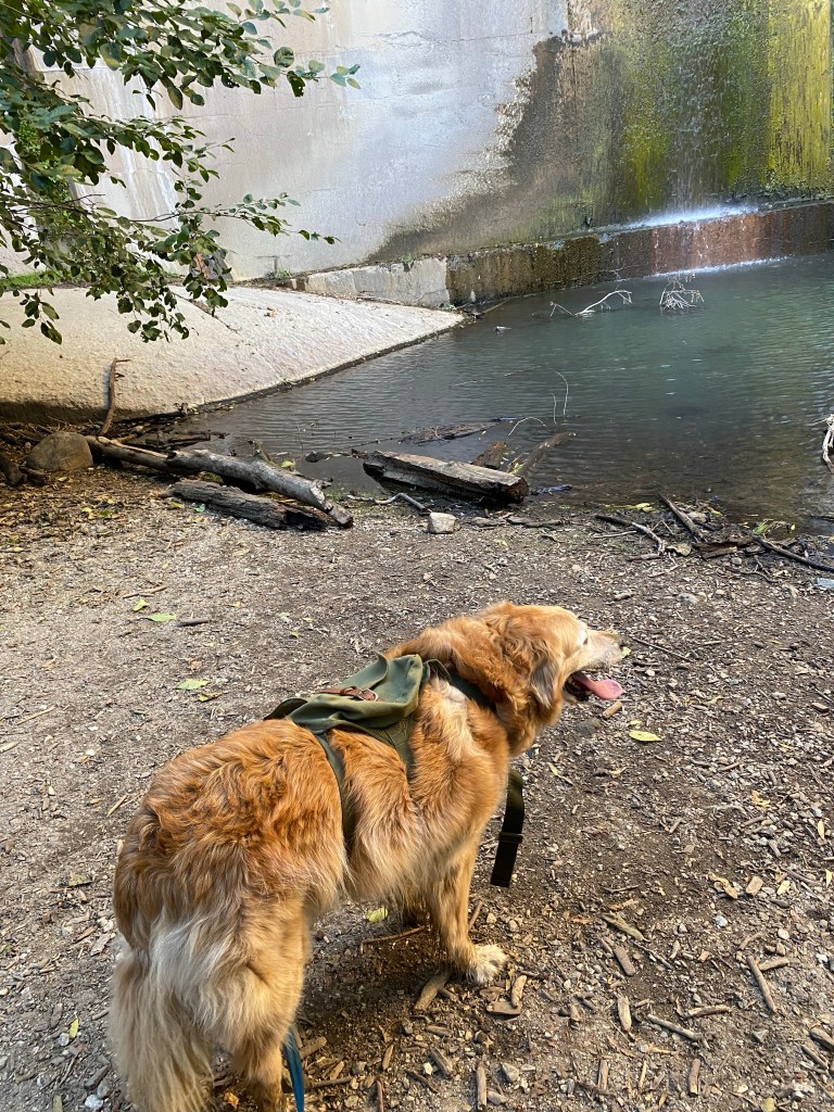 Brown Mountain Dam is a U.S. Forest Service dam that was built back in the 1940s as part of the Los Angeles River Watershed Program. While it is said to have negatively impacted the riparian ecosystem of the Arroyo Seco, the dam does provide a nice endpoint for an easy day hike. The water was flowing and while I wouldn’t drink out of it even with treatment, it made a nice splash pond for a very happy retriever.