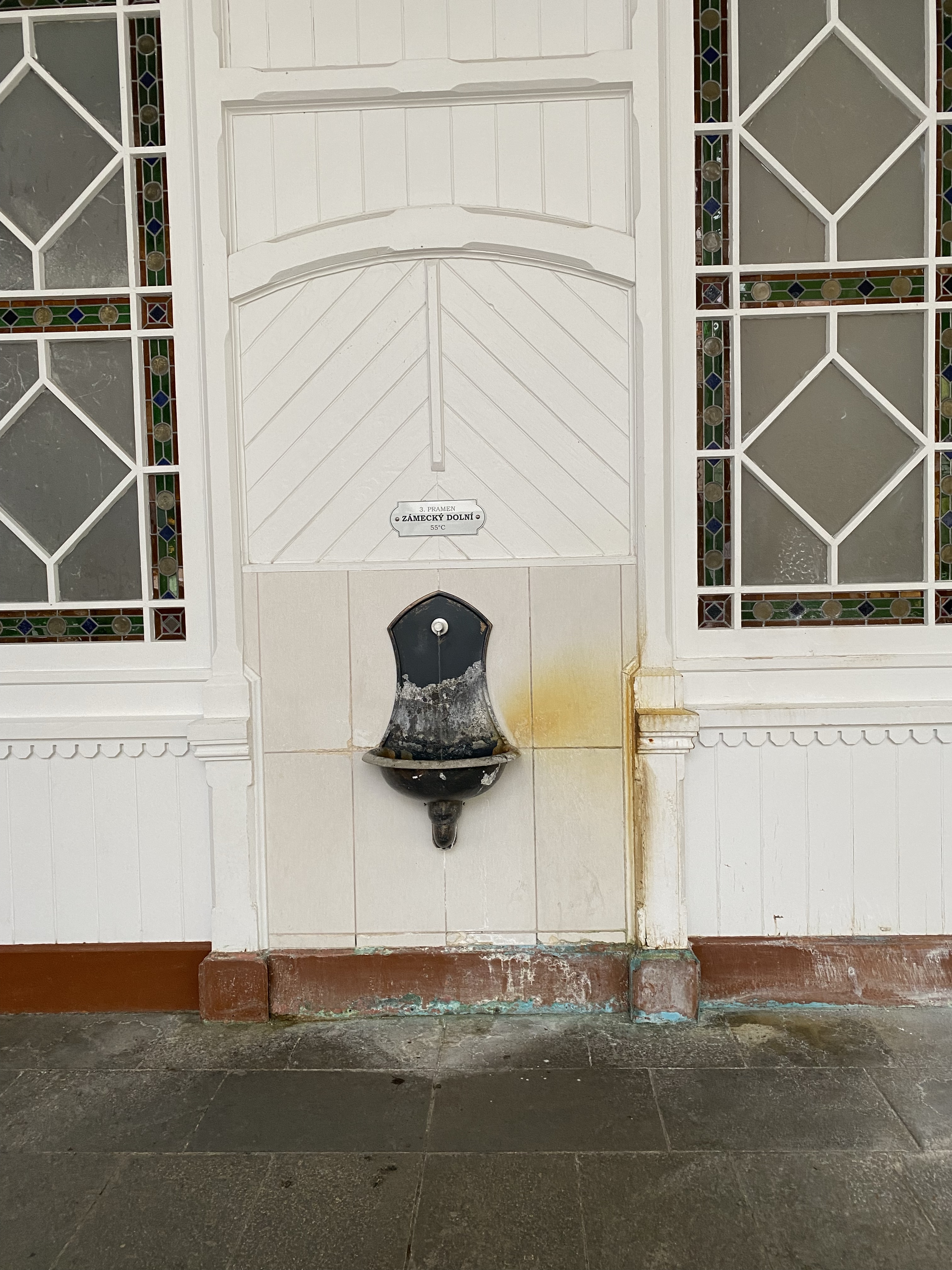 We arrived in Karlovy Vary at about 9 am after a two-hour RegioJet bus ride from Prague, which is about 75 miles east. We hopped off and made our way to the main part of town, stopping at McDonalds for some breakfast and WiFi to orient ourselves with the city. Karlovy Vary proved to be relatively easy to navigate, and after about a half-mile walk, we found the Mill Colonnade toward the center of town. The Mill Colonnade is the largest of the spa houses. It covers five of the accessible hot springs and is huge, built in a Renaissance style with Corinthian columns and intricate detailing. Like many, we walked up and put our hands in the water. It was indeed hot, and felt good on my hands on a very chilly day.