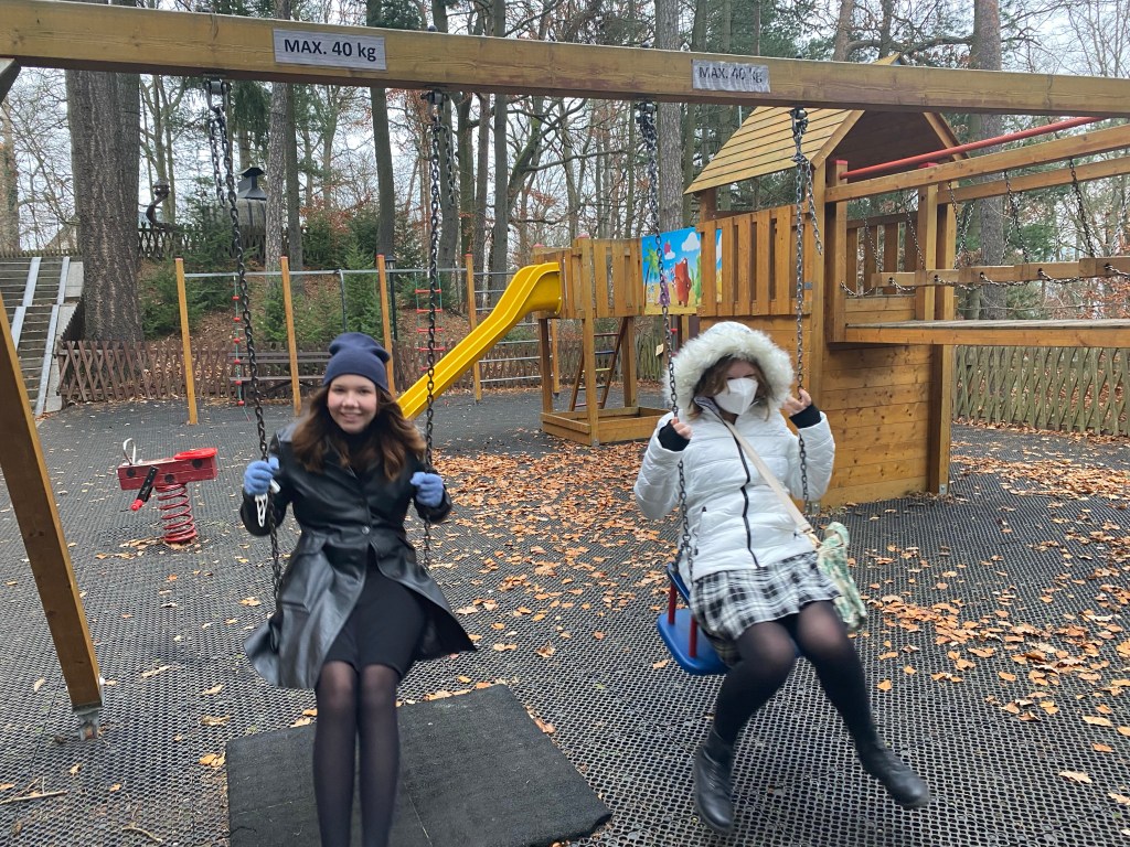 We arrived at Diana, on the hill called Výšina přátelství or Friendship Hill, above Karlovy Vary, and headed to the Diana Observation Tower. The tower was built in 1914 and measures 35 meters high. There is an elevator to take visitors to the viewing platform up top, but we elected to walk up the mere 150 steps to get to the top. We were rewarded with some stunning views of Karlovy Vary and beyond, with the changing leaves of autumn and the cool of the fog. It is said that on a clear day, you can see the Krušné Mountains and the Doupovské Mountains. The day wasn’t exactly clear, and to be honest, I was not entirely sure what landmarks I was looking at; all I know is that the view was really pretty, vast even on a cloudy day, and entirely worth a 150-stair climb.