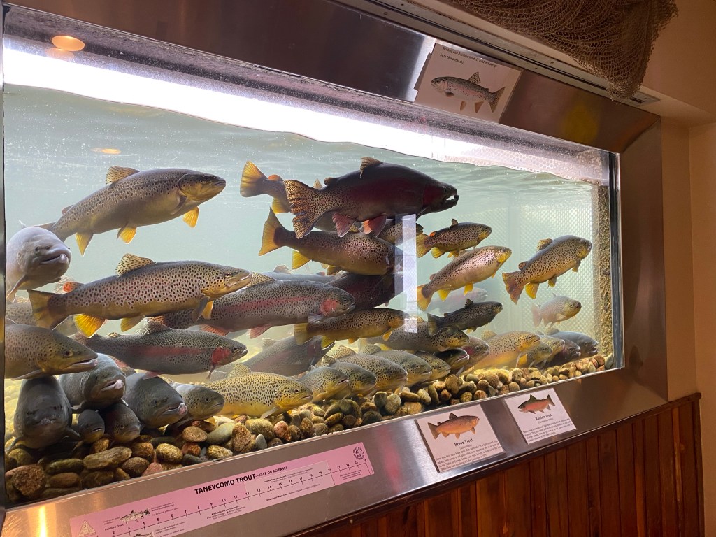 As wonderful as the building of the dam sounds from a recreational and flood-control standpoint, it did indeed change the ecology of the area as dams so often do. From 1913-1958, prior to the building of Table Rock Dam, Lake Taneycomo had been a warm water lake. Upon the completion of Table Rock, the lake was then fed by waters that were significantly cooler, especially when water is being released from Table Rock Lake upstream for power generation. As a result, Lake Taneycomo became an ideal environment for cold-water rainbow and brown trout.