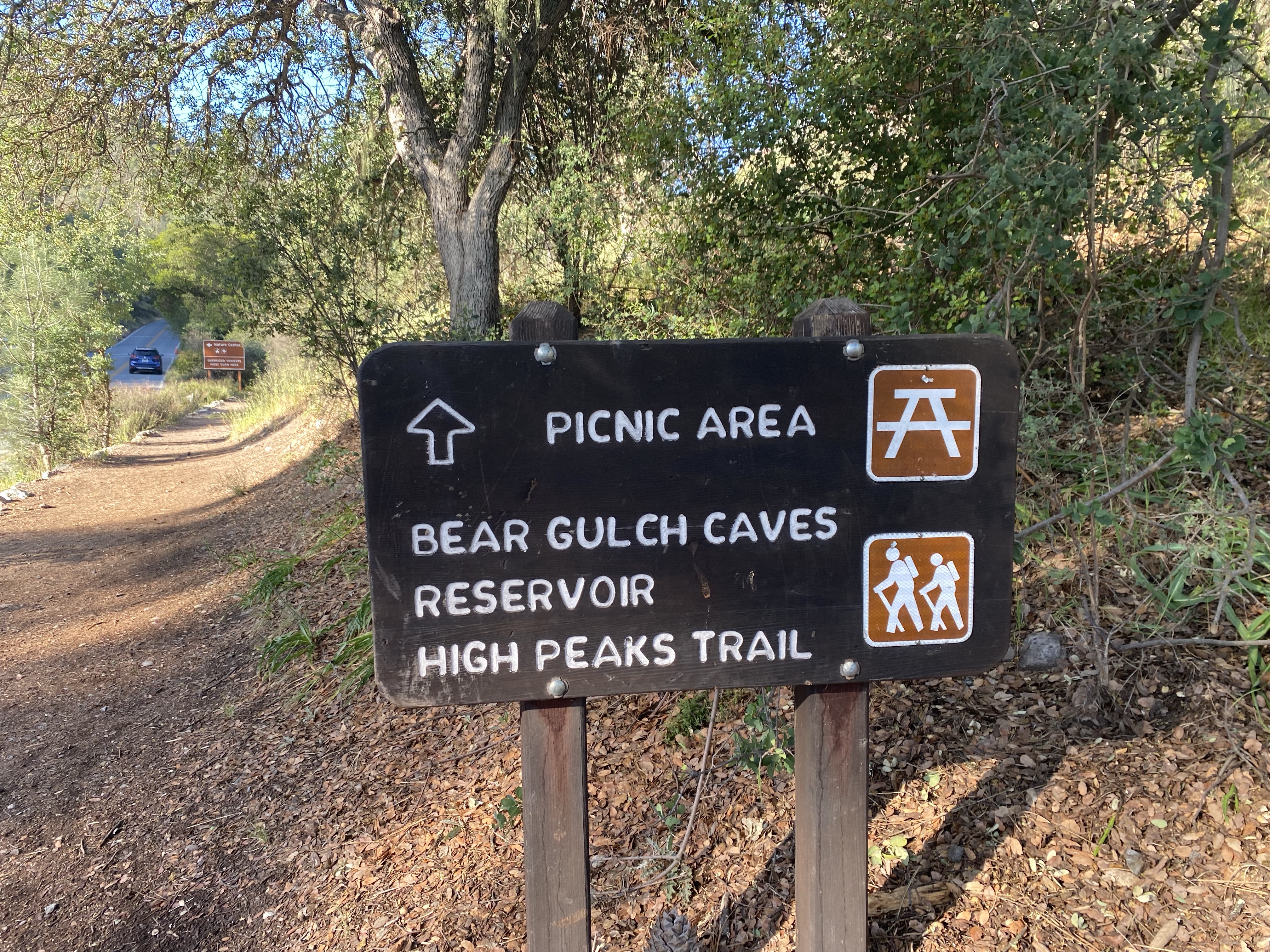 Our weekend adventure began at the eastern entrance, located in Paicines, off California 25. The eastern side of the park is where Pinnacles Campground is located, as well as the Pinnacles Visitor Center, which we learned is no longer a visitor center but a bookstore. The east side is connected to the West Pinnacles by two hiking trails, however there is no road that connects the two sides of the park. Highway 146 follows the San Andreas for much of its length and while it grants entry to both the east and west sides of the park, it does not connect inside the park. As much as I would have loved to hike across, that will be a 14-mile roundtrip trek for a different time. Instead, we made sure to arrive at the Bear Gulch Parking Lot before 8 am to hopefully score a much-coveted parking spot. At that time in the day, even on a Saturday in the popular spring season, there were plenty of spots in the small lot, relatively speaking. The lot was beginning to fill, but it was easy for us to park close to the trailhead. Making sure we had our essentials, we were able to hit the trail by about 8:15.