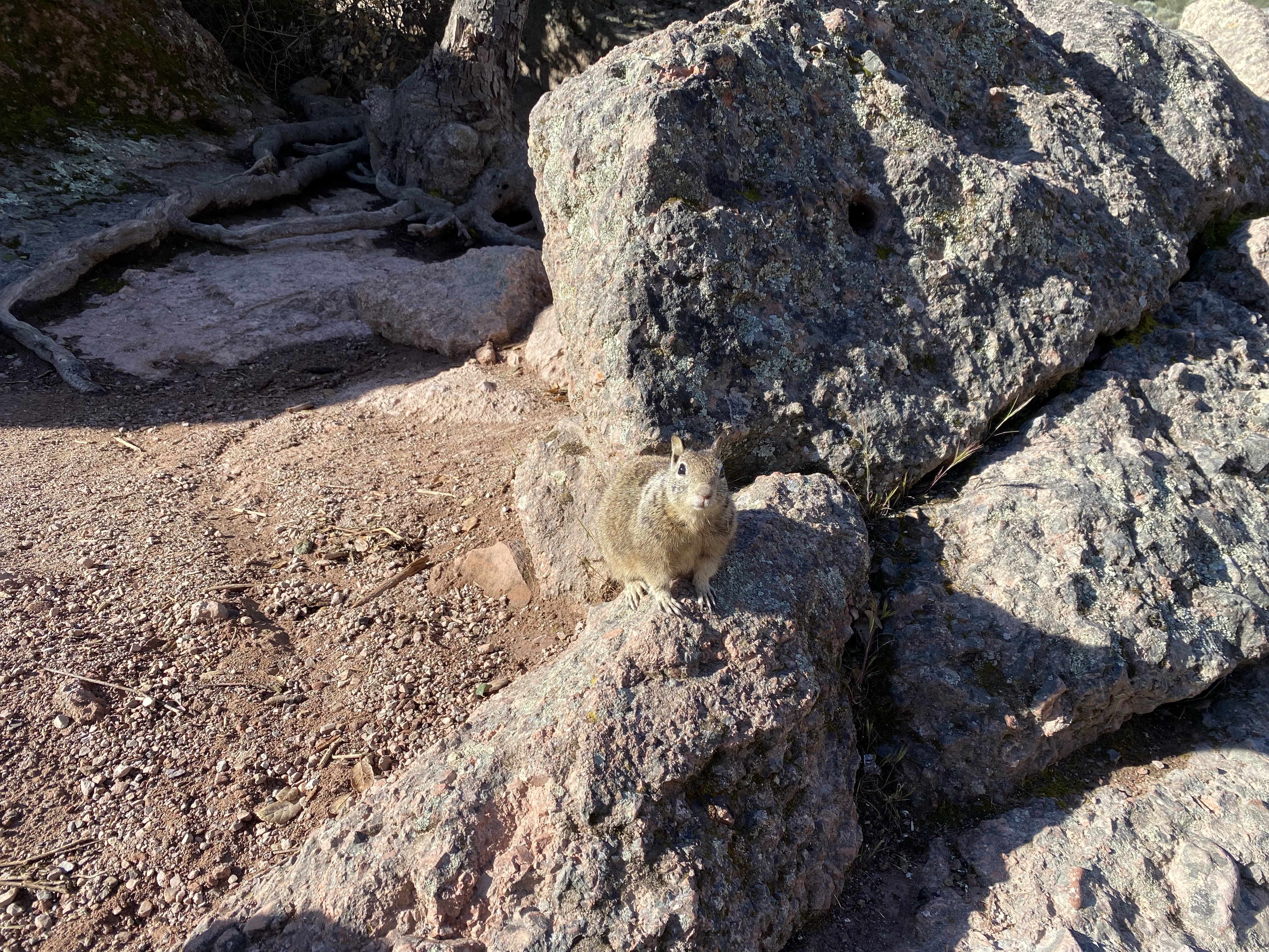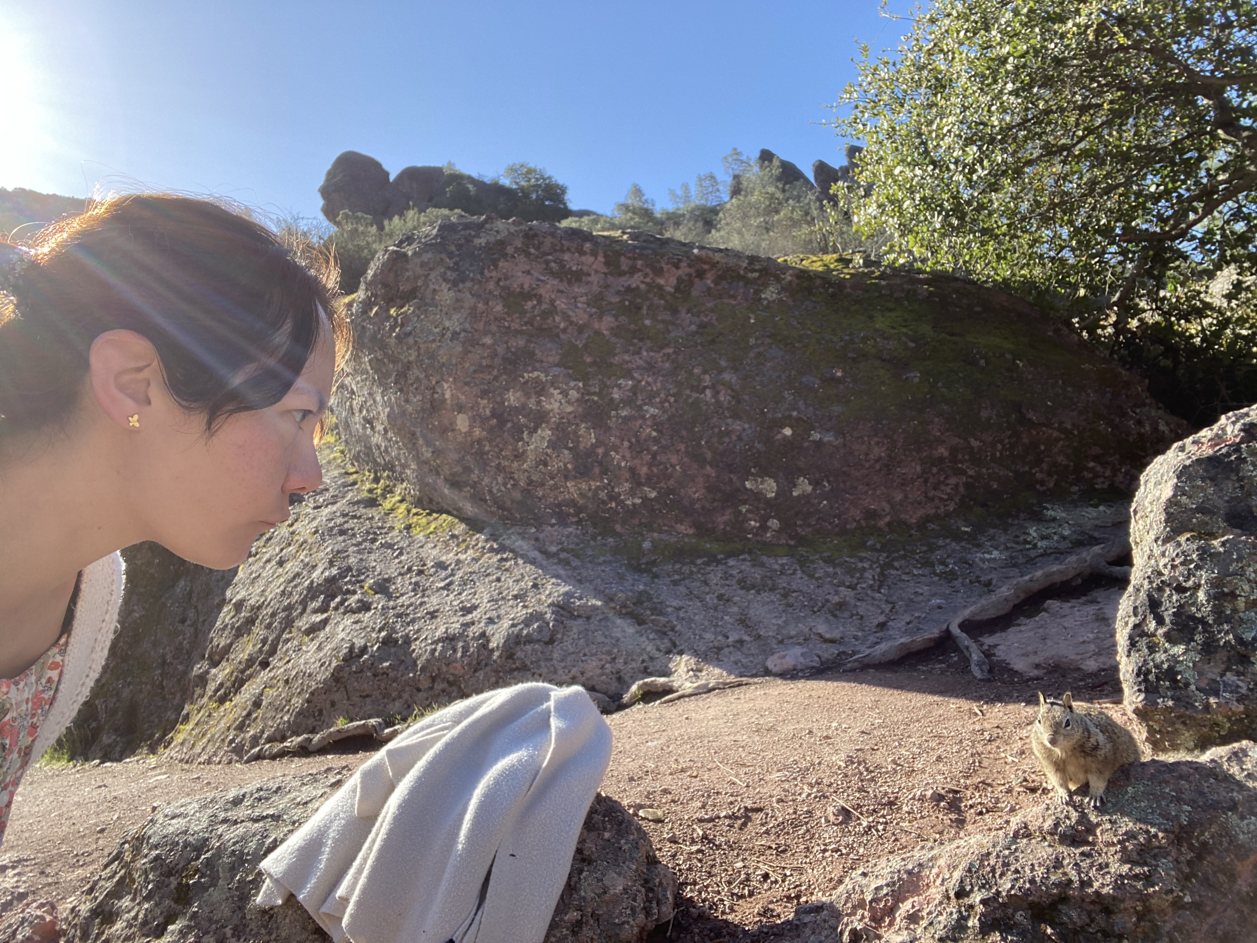 Speaking of snacks, be sure to keep an eye on your stuff and don’t feed the wildlife. While at the reservoir, I met my nemesis in a persistent California ground squirrel who was stalking me for my snack bag. I finally had to go Homo sapiens on his bushy tail and thumped to scare him off as he approached Sami and her parmesan crisps. We made sure that our area was clean, including crumbs before hiking out.
