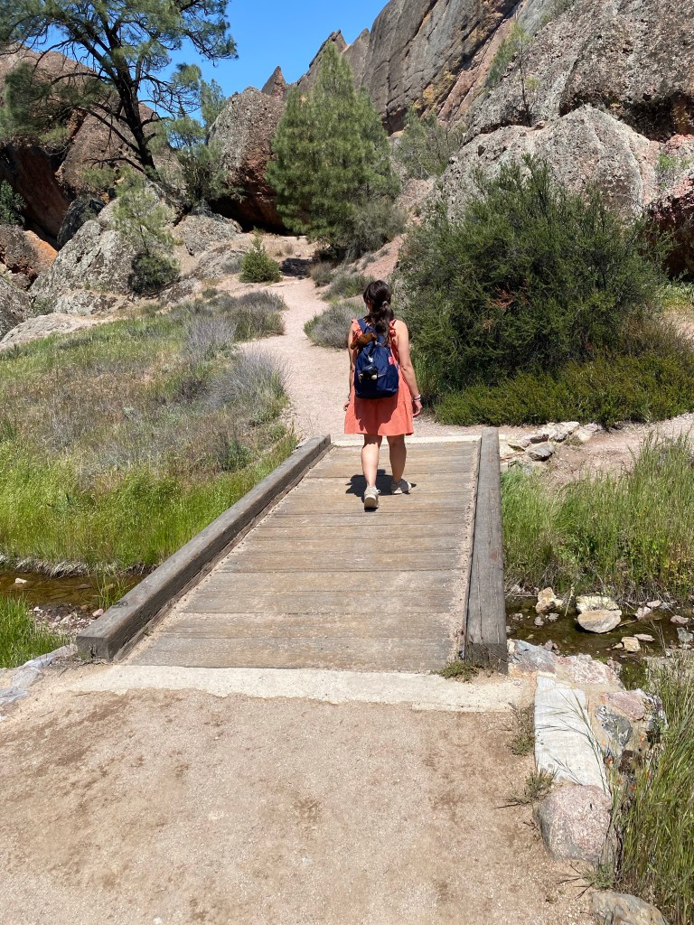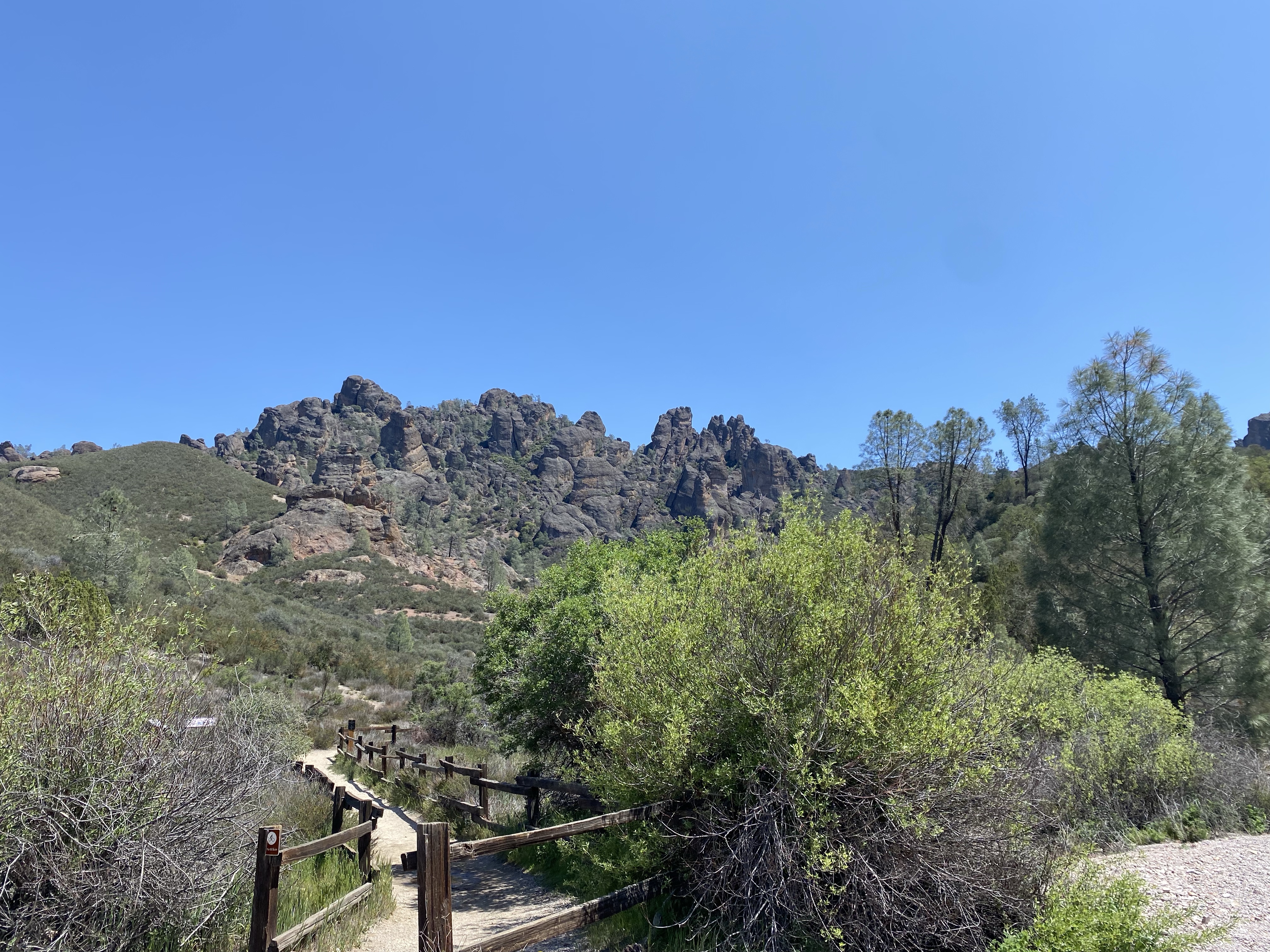 There are no pets allowed on the trails in Pinnacles. Dogs are allowed on roads and in the campground on the east side, but there are not as many opportunities for pups in Pinnacles as in other parks such as Yosemite or Joshua Tree.