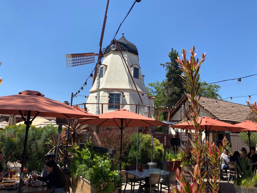 On the way back to Los Angeles County however, we drove California 25 to U.S. 101 South. This route took us through the famed agricultural areas of the Salinas Valley, as well as the many vineyards of the Monterey County, Paso Robles, and Santa Barbara County wine countries. It is a route that carries many fond memories from drives up and down the coast when I lived for a short period of time in Santa Cruz County. The drive along 101 is much prettier than the parallel-ish stretch of Interstate 5, and faster than the gorgeous but winding Pacific Coast Highway. There are also some beautiful cities along the way that have scenic beaches, historic missions, and other points of interest. So as Sami loved windmills when she was smaller, I planned a visit to Solvang to enjoy a Sunday brunch with my quickly growing youngest child.