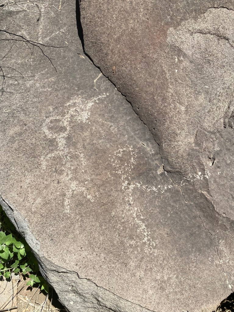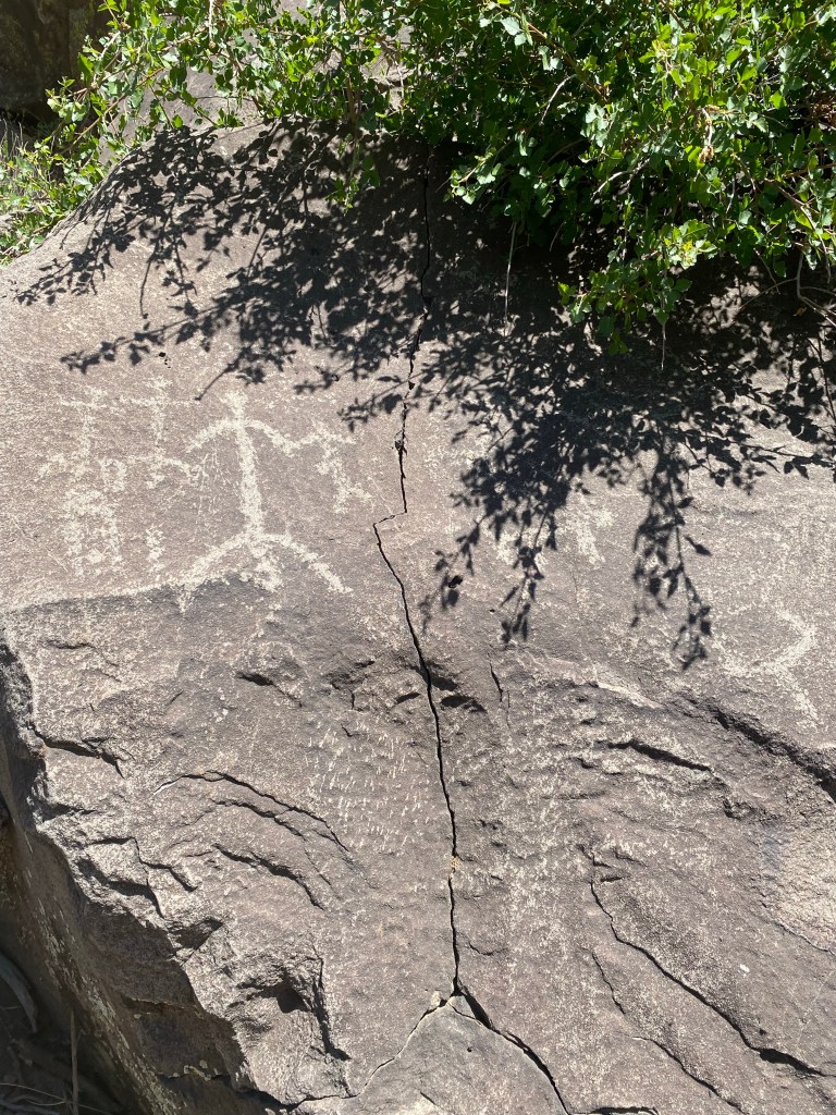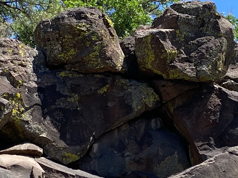 The trail was particularly pleasant on the day we visited. There was a nice breeze and mild temperatures, and the ponderosa pines made for some nicely shaded spots. The other cool thing about the park, in addition to the number of natural resources, is its cultural significance. Picture Canyon has petroglyphs left by the Northern Sinagua people, who lived in northern Arizona from about 700 till 1300. The Waterbird Site, named after the waterbird depicted on the stone, has a number of images etched in the stone. We appreciated the markings from behind the chain rope and took photos.