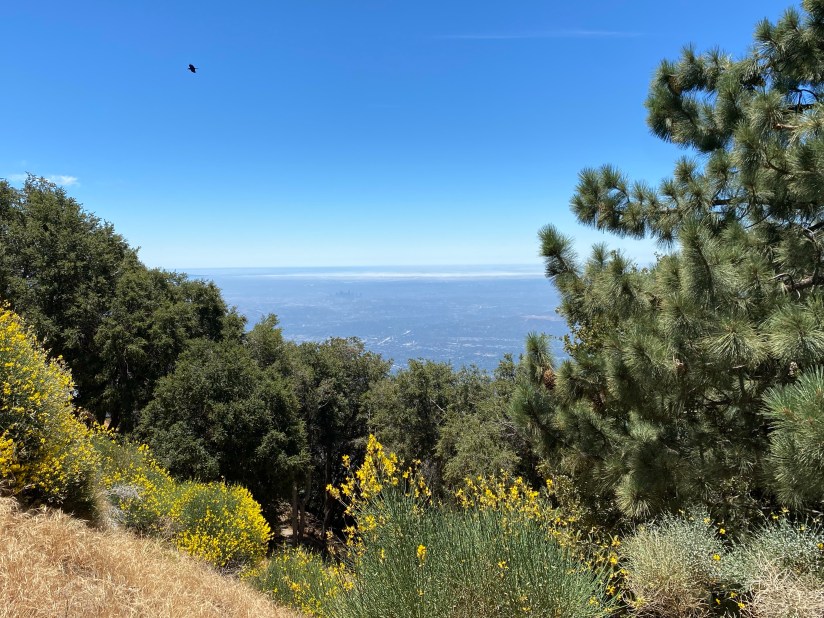 Thankfully though, the views of the radio towers remained in view, serving as encouragement to keep going as we were already so close, and the panoramic views of the San Gabriel Valley and beyond were a testament to how far we had already come. The wildflowers were also in bloom in the heat, and the sweet scents hung in the summer air. We reached the summit and the trail ended at the parking lot in front of the Cosmic Cafe.