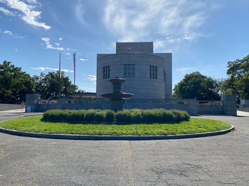 The park surrounding the museum was really pleasant. It was close to our AirBnB in Prague 3, and so it was an easy walk from where we were staying. Yes, the museum is indeed on a hill, with trails that take visitors up a nice incline, but there was fortunately some shade thanks to the trees along the paths. The day was warm, and I failed to bring a water bottle as I figured we’d grab a soda at the rooftop cafe.