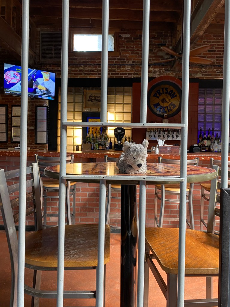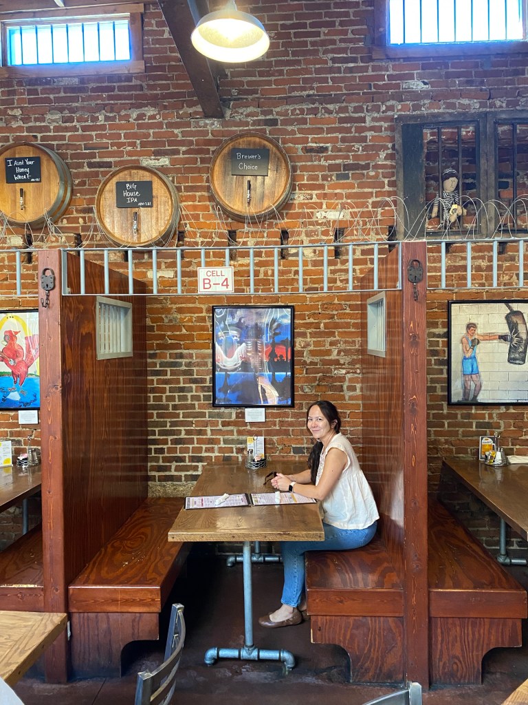 For lunch, we headed to Prison Brews, a brewery and pub located near the old Missouri State Penitentiary. The brewery featured burgers and sandwiches along with craft beers. The restaurant is designed to invoke the image of prison, with booths decorated like ‘cell blocks’ and artwork that was done by inmates of the state penitentiary. I had a black bean burger and tater tots along with a glass of their honey wheat beer. The burger and tots were decent, but the beer was really good.