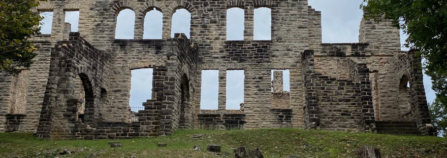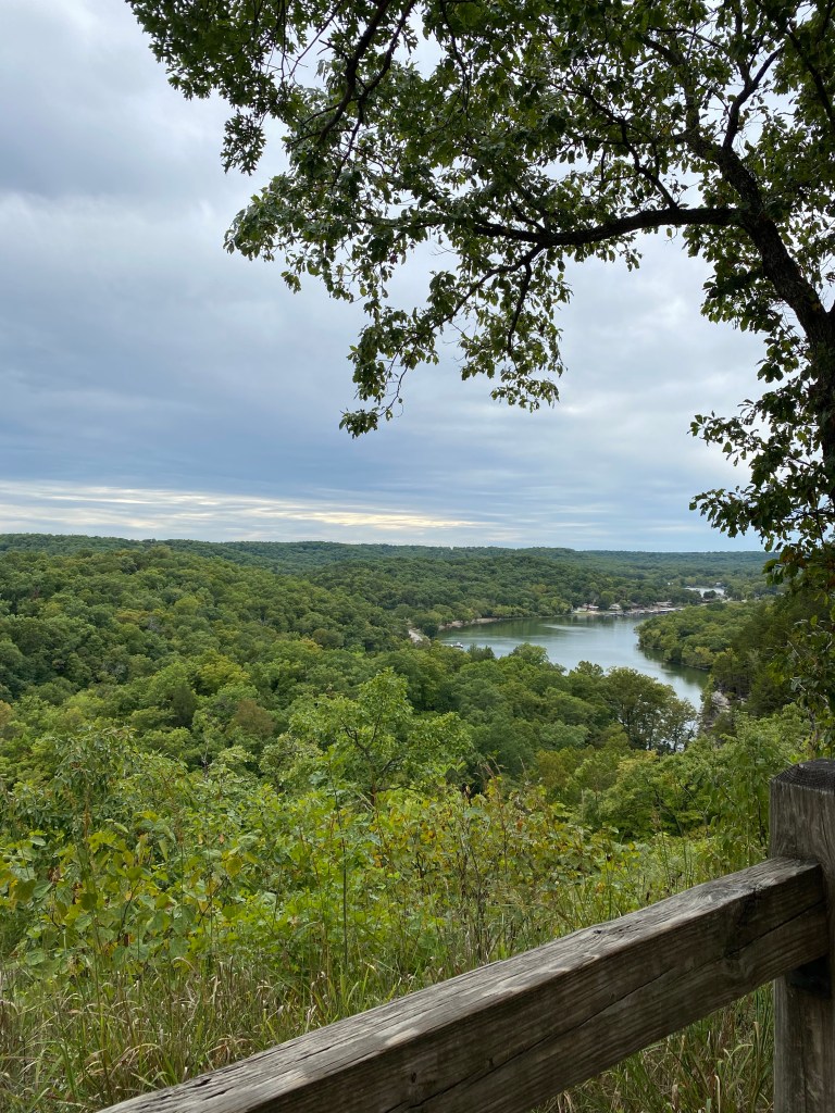 Though I jest, it is indeed true that one can pay a visit to an old European castle, as well as caves and natural bridges that are typical of what is known as karst topography in the forests of central Missouri. Along the Niangua arm of Lake of the Ozarks lies Ha Ha Tonka State Park. Its name is said to translate to ‘laughing water’ in the Osage language; long before it was a state park, the area was home to several Native American tribes, including the Osage. Today, the state park covers just over 3000 acres and has 12 miles of hiking trails to explore. It also offers up some really pretty vista points from which to view the meandering Lake of the Ozarks. And yes, you may see the ruins of an old castle without needing a passport here at Ha Ha Tonka State Park.