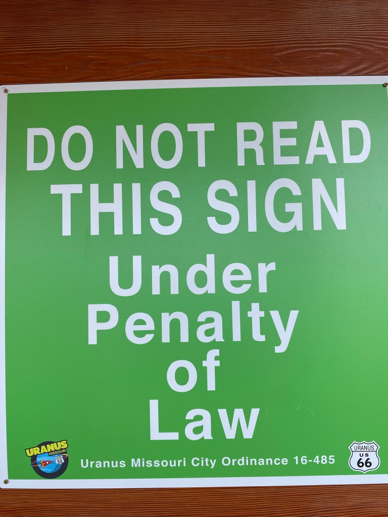 After receiving our instructions and picking up Jacob with tears of joy, we headed off the base and to his requested brunch spot: the Waffle House. He had heard his peers talking about ‘this great place where they served waffles,’ and he wanted to try it. I guess I took for granted that he had never been to one being out in California, but as there wasn’t much around and waffles are always a good idea no matter what time of day, to Waffle House we would go. The food was decent and the coffee plentiful, so it was a good start to the day. But brunch could only take so long, and we had what felt like plenty more time to hang out. So we headed to an interesting destination along the old Mother Road- Uranus, Missouri.
