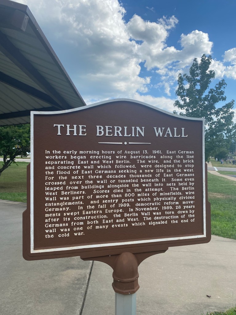 There is also a piece of the Berlin Wall outside. This was pretty cool since we had seen the remnants of the wall when we visited Berlin earlier in the year.