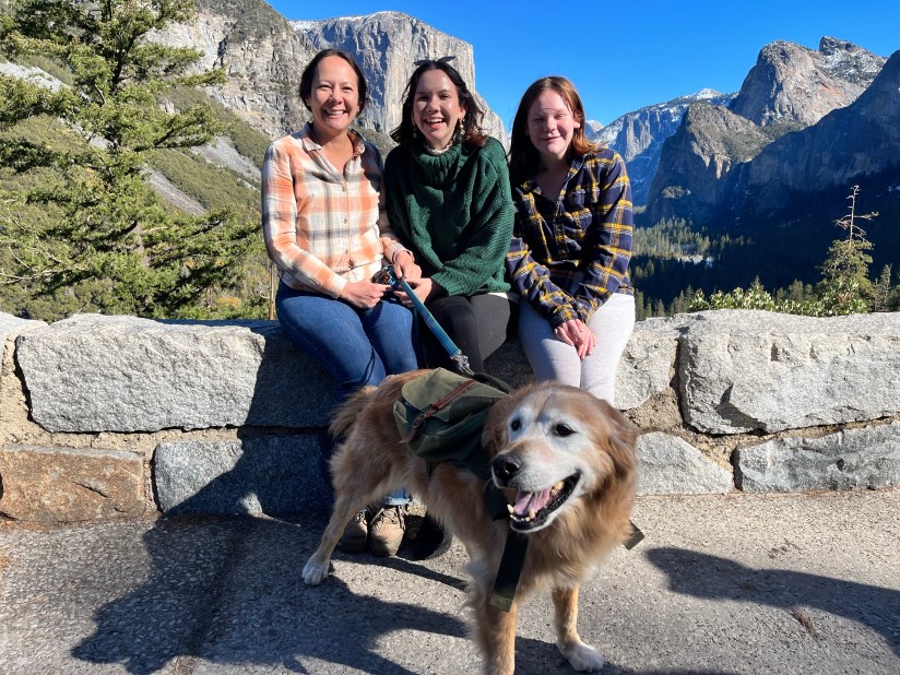 The girls and I had another opportunity to visit our perennial happy place with Owen this past weekend as we kicked off the Thanksgiving week. With a signed copy of folk artist Noah Kahan’s new release, “Stick Season,” playing in the Kia’s CD player, we made our way toward Yosemite Valley, entering the park through the south entrance. As it is the closest entrance for those traveling from Southern California and at a lower elevation than Big Oak or Tioga Pass, I was not too concerned about ice and snow on the road so early in the cold season. Transportation authorities are pretty good about keeping CA-41 clear, as is the National Parks Service. That said, there was snow even as we made the climb through the Sierra National Forest and to the park entrance kiosks.