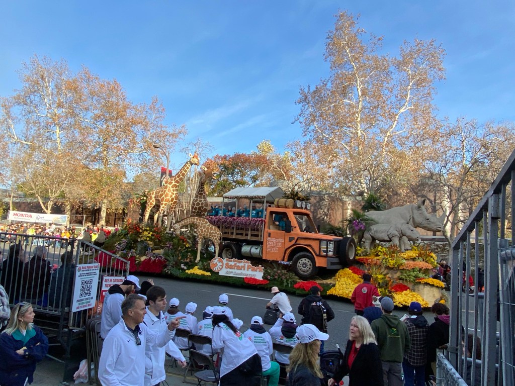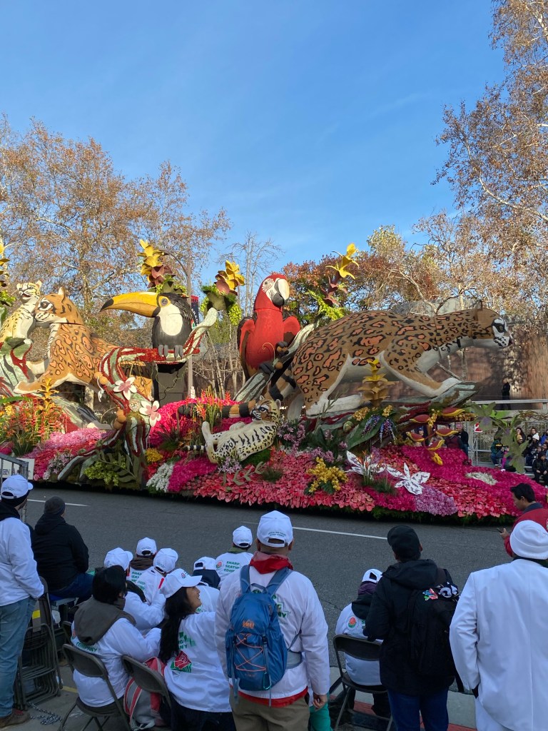 This year’s theme was “Turning the Corner.” The Tournament of Roses Association president stated that this was to celebrate the potential of the new year. The floats, while overall seemed smaller, were still magnificent and were exquisite floral tributes to nature, science, academic achievement, and the human spirit. Some of my favorites were the Cal Poly Universities’ float, “Road to Reclamation,” winner of the Extraordinaire Award; City of Burbank, “Adventure Awaits”; and Western Asset’s “Welcome to the Jungle.” Unsurprisingly, I really loved those floats that depicted nature and the outdoors.