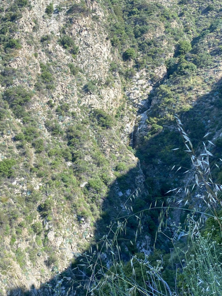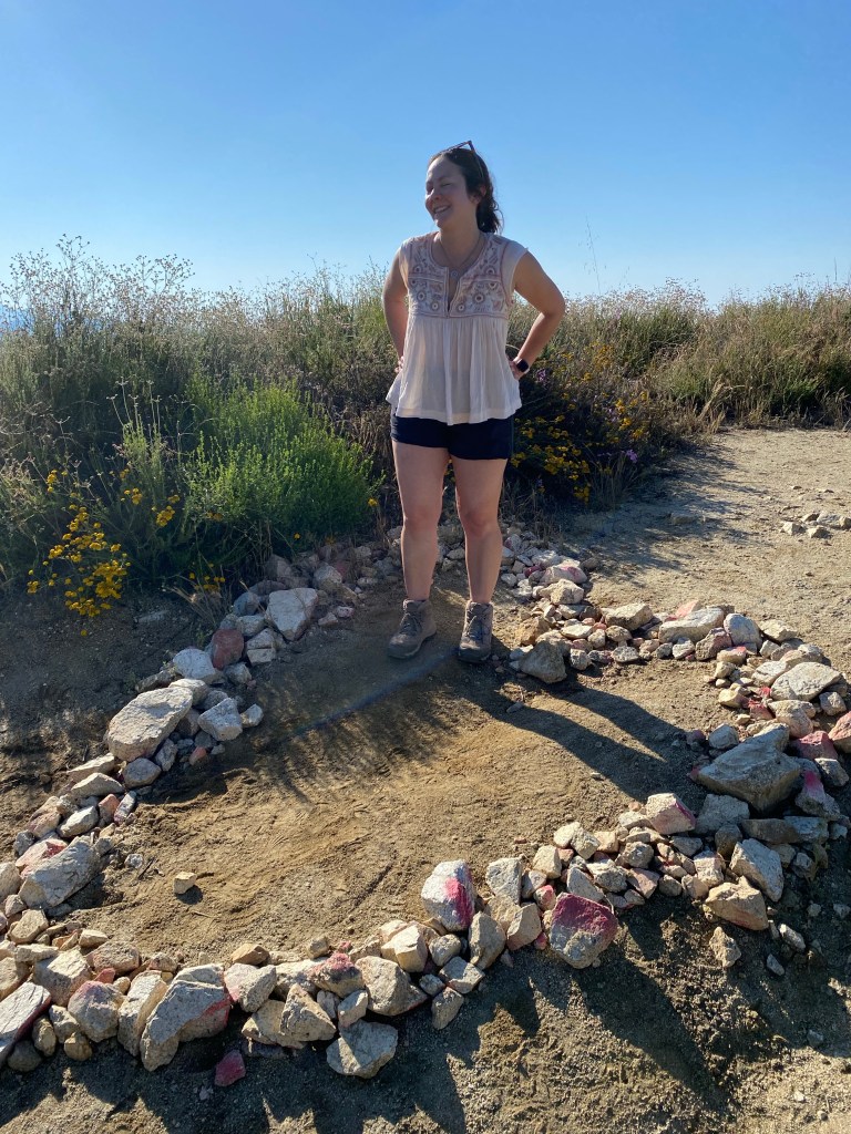 There is some water in the canyon, which makes for a rather relaxing hike up to the ruins. With all of the rain earlier in the year, there is even a bit of a waterfall. I stopped to take some video on my way up to the peak while training for backpacking season. The day was slow to warm up with the June gloom cloud cover, however, this gave way to a beautifully sunny day. The views were lovely, and the temperatures were mild in the morning, which made going up with a pack more bearable. The only bummer was that the sign was once again gone, but the rock heart was still there. This time I did bring a trekking pole, and it definitely helped with my descent. It made for a happier trail.