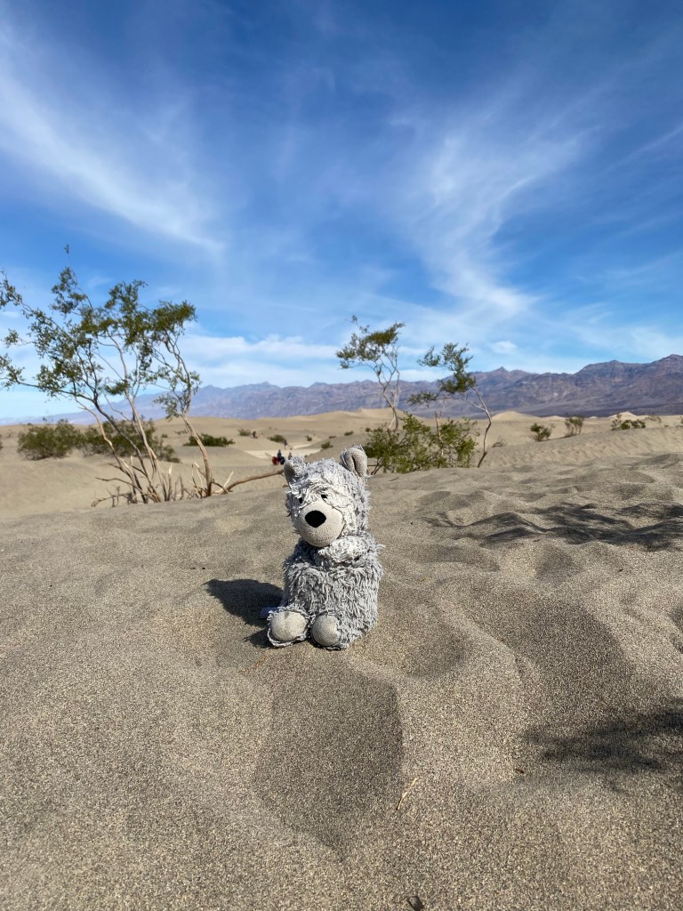 The late February day was perfect. The weather was still mild, and the sunny day was the type made for basking and relaxing. I enjoyed being able to lie on the sandy mounds and take a mini nap as a gentle breeze made its way across Mesquite Flat. It was very pleasant, and the boys were having fun. But alas, it was eventually time to head out. Mesquite Flat was the last major stop on our Death Valley adventure weekend, and I was a little sad to leave it. But the long weekend was coming to an end, and it was time to head home and prep for the week ahead. I was glad to be able to visit, and I hope to return soon. Unlike the old advertising posters, Death Valley in the late winter and early spring is not representative of the abode of the damned but rather a little slice of adventurer’s heaven.