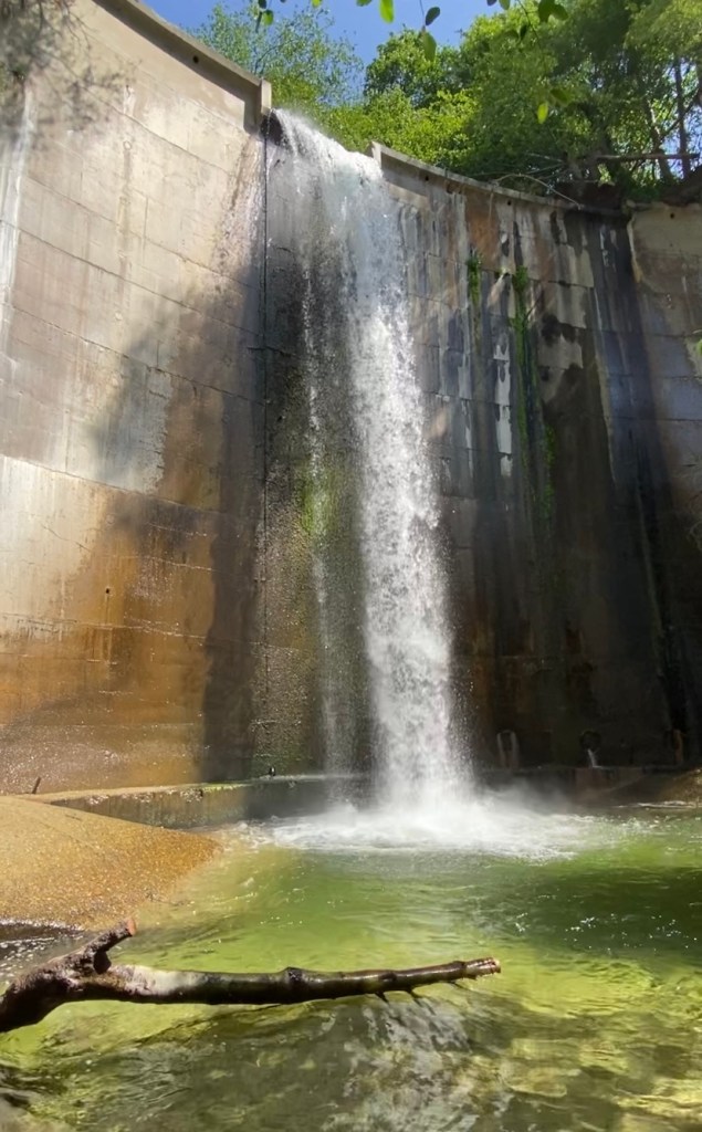 Despite this, the space above the dam was very pretty. An abundance of trees and shrubs gave some shade on the warm afternoon. The water was cool and as we were wearing water shoes or sandals, we were able to wade through the stream and cool off.