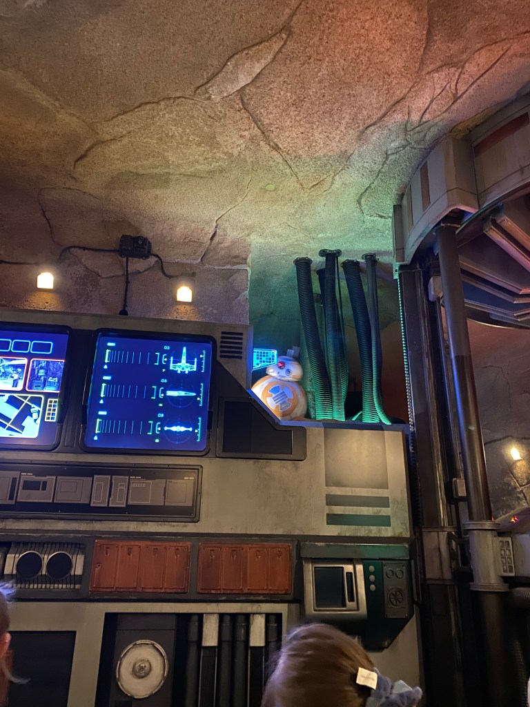 At Galaxy’s Edge, we were able to get on both major attractions- Rise of the Resistance and Smuggler’s Run. Smuggler’s Run was an interactive simulation of a trek across the galaxy in the famed Millennium Falcon. There are roles for each of the six passengers: two pilots, two gunners, and two engineers. I got to be a pilot on our run, possibly to the detriment of our crew, but it was all in great fun. The experience played like an immersive video game, and it was easy to get into.