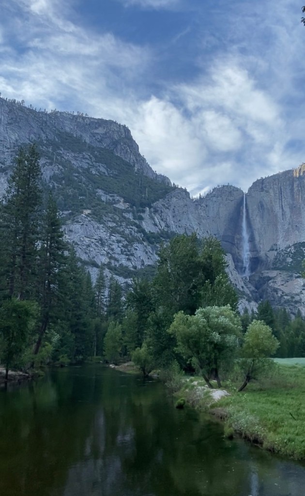 The Swinging Bridge spans the Merced River and offers a stunning view of Yosemite Falls. Despite its name, the bridge no longer swings. According to the NPS website, the prior swinging bridge that actually did swing was replaced after taking hits from multiple floods. The flood in 1964 damaged it to the point that it was replaced with a permanent fixed structure. It is still a popular spot and very scenic.