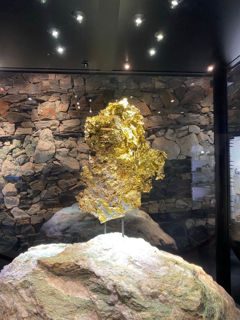 After enjoying our wine flights and grabbing a snack, we checked out the museum onsite. There is a retail area in which one can purchase artisan and fine jewelry, but the highlight of the museum was definitely the vault. Inside the vault is the famed 44-pound leaf gold specimen, the largest to have been discovered. Along with this piece de resistance, there are also other gem and mineral specimens, as well as historic artifacts.