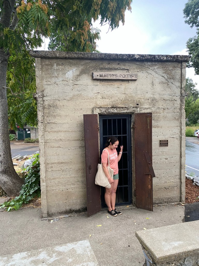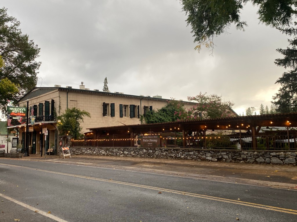 As the rain let up after dinner, we walked around the village. There are a number of buildings that are on the list of California Landmarks, such as the Murphys Hotel, the Peter L. Traver building whose iron shutters protected it from fires in the mid- late 1800s, and Murphys Pokey. The pokey is a single room jail cell that was built in 1915 from hand mixed concrete. Legend has it that while no real criminal was actually jailed in the cell, one of the men involved in building it became so drunk and rowdy when celebrating its completion, he became its first inmate. Today, it is decorated inside with seasonal decor and makes kind of a fun background for Instagram photos.