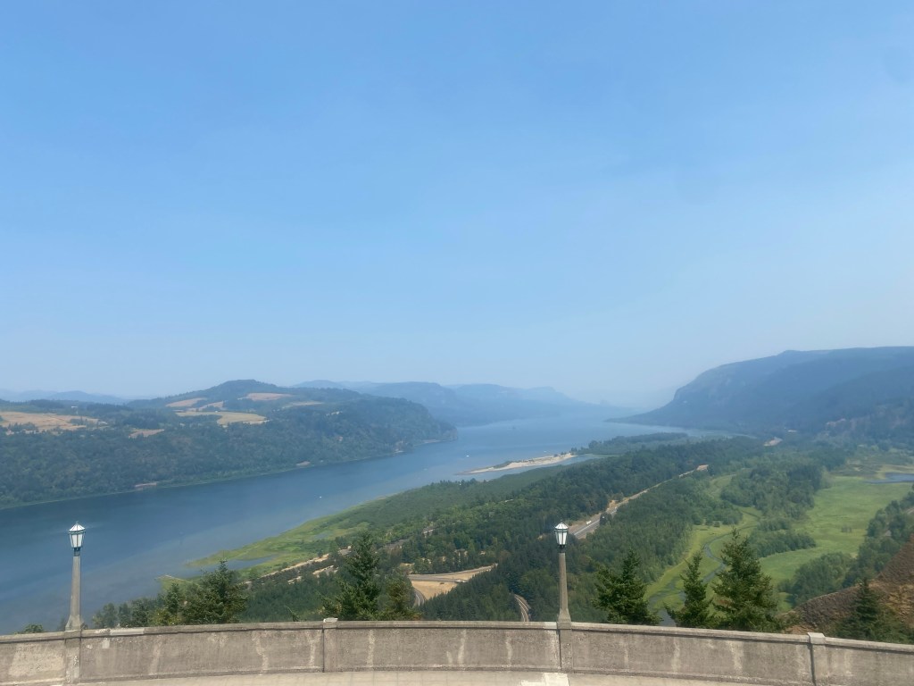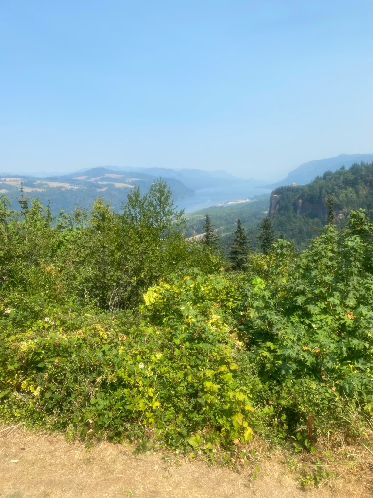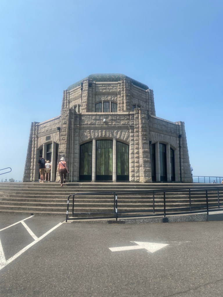 Though it was warm, the adventure was not over yet. We backtracked west to the Portland Women’s Forum Scenic Overlook. The Portland Women’s Forum had been active in preserving the area of the Columbia River Gorge since 1946 and gifted the land to the Oregon State Parks a couple decades later. Today, the overlook offers lovely views of the gorge and the Vista House- which was our next stop.