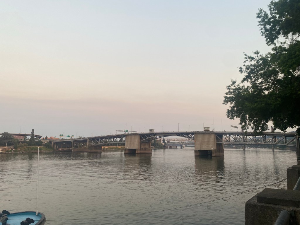 As evening approached and the day started to cool, we did walk around Portland a bit to grab some delicious Middle Eastern food for dinner and to explore. Our lodgings were right across from the Battleship Oregon memorial. The monument was the old mast from the ship which was commissioned from 1896 until 1942. It was eventually scrapped for parts, but the mast is on display in Tom McCall Waterfront Park, a green space along the Willamette. It has some graffiti, but still stands as a testament to the Oregon’s history.