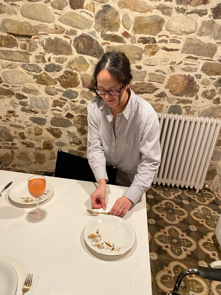 But after a sleepless night, Christmas morning dawned, and we checked out of the AirBnB to head to our vacation spot for the week: Girona. The Catalonia region of Spain is divided up into four provinces: Barcelona, Tarragona, Lleida, and Girona. The city of Girona itself is known for its medieval architecture and was one of the filming locations for HBO’s popular show, “Game of Thrones.” We stayed outside of the main city within the province of Girona in a beautiful, historic farmhouse with stunning views of the surrounding countryside. Thanks to the rental car fiasco of the night prior, we could not all fit in the five—seater with a manual transmission. Thus, Michael drove Emily and me, along with most of our luggage and groceries the hour-and-a-half to the farmhouse, then went back to the train station to pick up Nate and Sami who were accompanied by their older brother-in-law. Fortunately, Girona is connected to Barcelona by a ride on the high speed rail, and this experience ended up being a treat for the younger kids.