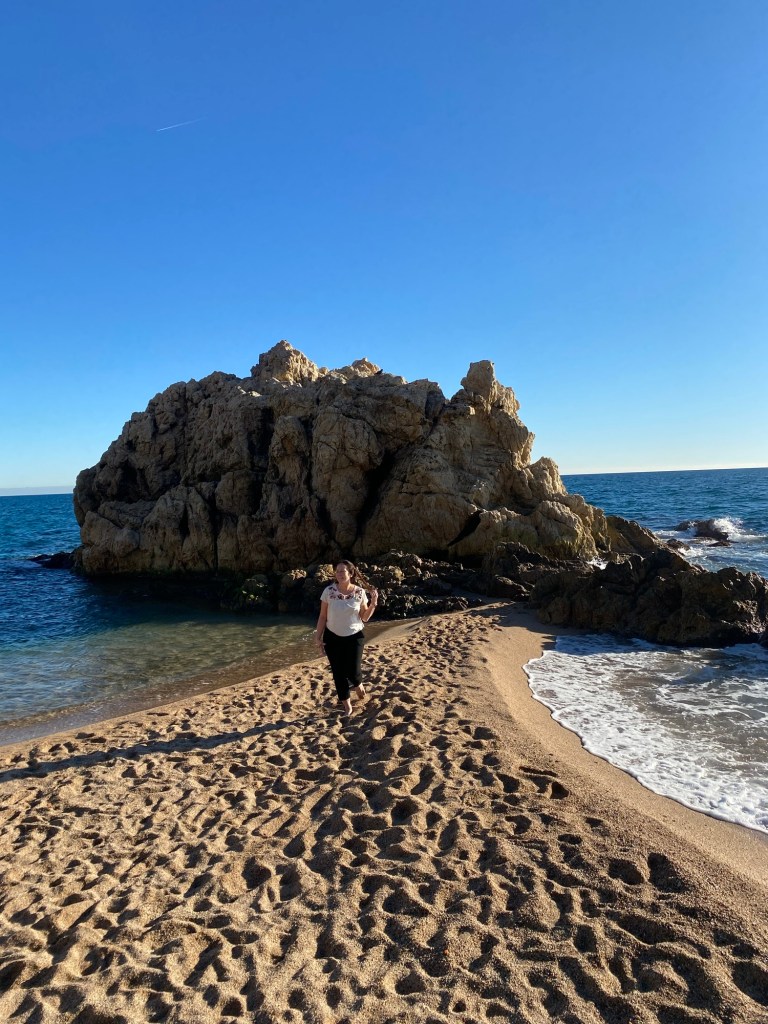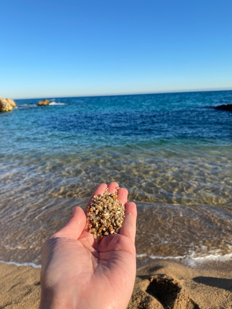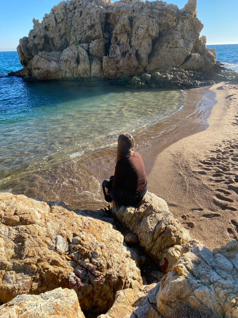 After applying for our emergency passports at the U.S. Consulate in Barcelona, we decided to carpe diem and redeem the time. We took the scenic route back to where we were staying in Girona. From Barcelona, we made our way to the N-11 via C-32, which follows the coast. Our first stop was Roca Grossa in Calella. This is a small, quiet swimming beach with rock formations, rough sand, and the crystal clear water of the Balearic Sea, a body of water within the Mediterranean Sea. Even on a weekday in December, there were a few families enjoying the sun. I’ve read that the beach gets significantly more crowded during the popular summer months. I could see why; Roca Grossa is beautiful. And with it being relatively quiet, it was very pleasant. While we had our suits in the van, I had no intention of swimming on this particular trip. However, I did stick my feet in the water, and was surprised to find how warm the seawater was, even in December. It felt refreshing. Sami, my rock climber, enjoyed playing on the rock formations with her siblings. While the kids climbed on the rocks, I searched for sea glass and cool shells, and successfully found both.