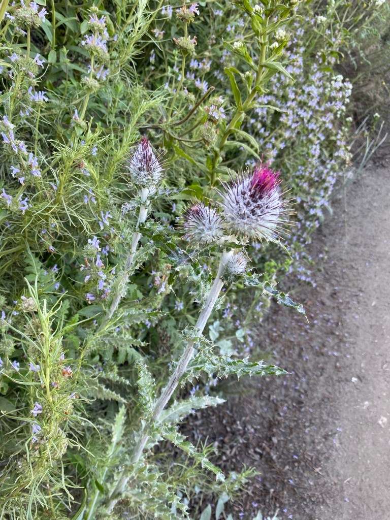 After looking at the signs for a bit, we headed onto the Sunset Ridge Trail. The trail was not super shaded, even as it started dipping into the canyon. That said, the morning was still relatively cool, and there were a variety of wildflowers in bloom.