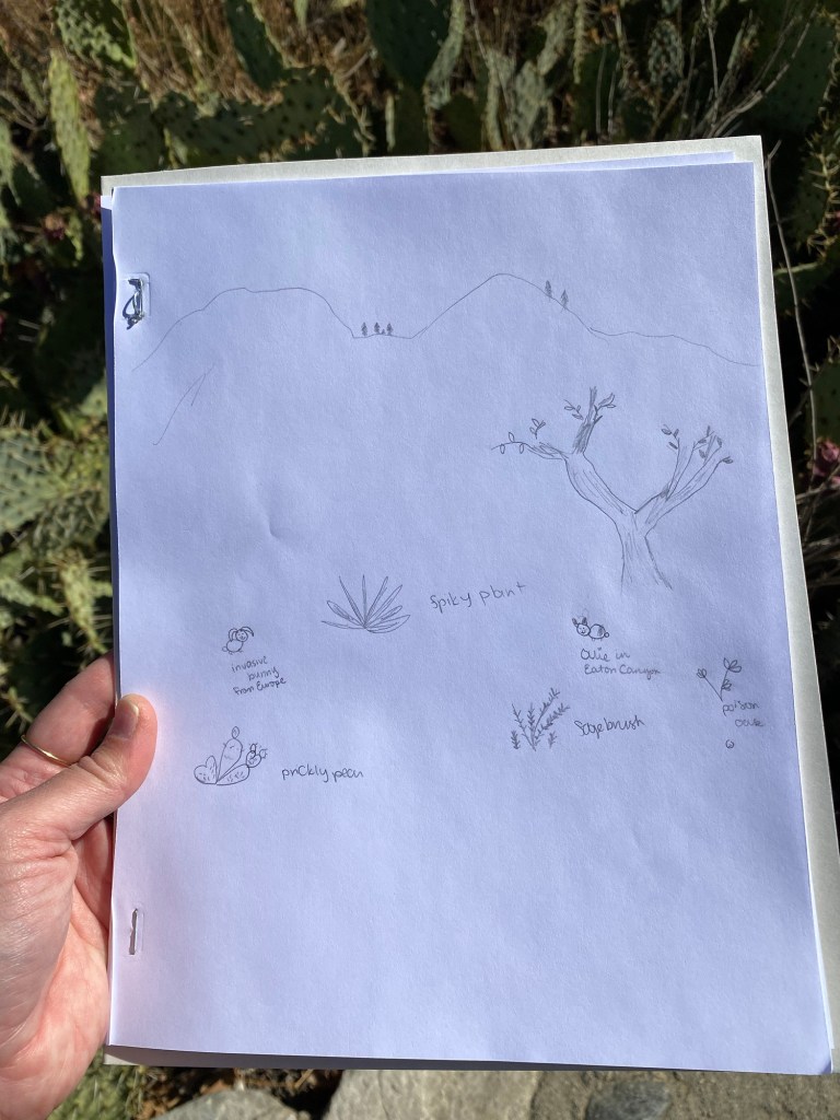 The last time I was at Eaton Canyon was on a quiet Thursday after the election. I was there on a school field trip, a collaboration between our high school art program and a fourth/fifth grade class at one of our elementary schools. It was a beautiful morning learning about native science and practice and the importance of observing and working with the land. Listening to the presentation and the resilience of the Tongva people gave me hope for the future even in the midst of uncertain times. I was saddened to read that the fire impacted the Tongva Taraxat Paxaavxa Conservancy. While I have faith that the land will heal, especially with traditional ecological knowledge, this is a deep loss for the Tongva community. For more information and to help with the recovery efforts, visit tongva.land.