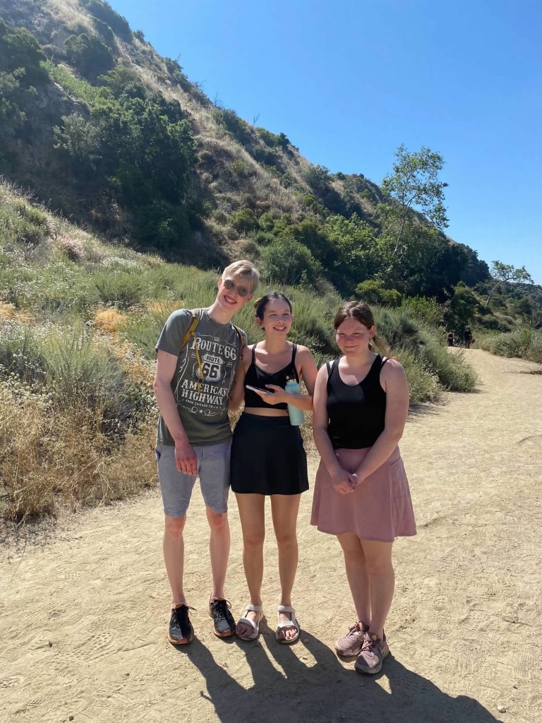 Then for several years, up until the Covid19 pandemic changed life forever, we would hightail it up after school to the Pinecrest Gate every Monday evening for our weekly Henninger Flats hikes. The kids would race up to the sign with their weighted packs and enjoy snacks and views of the valley below before heading down and stopping at the McDonalds on Altadena Drive and Washington Boulevard for more snacks. Sometimes we would bring Owen, and he would happily receive the free pets while devouring his trail treats. He had hiked Eaton Canyon many times in his floofy life, and he seemed to enjoy every single adventure even while huffing up the mountain. Now Henninger Flats is closed, and that McDonalds burned in the conflagration.